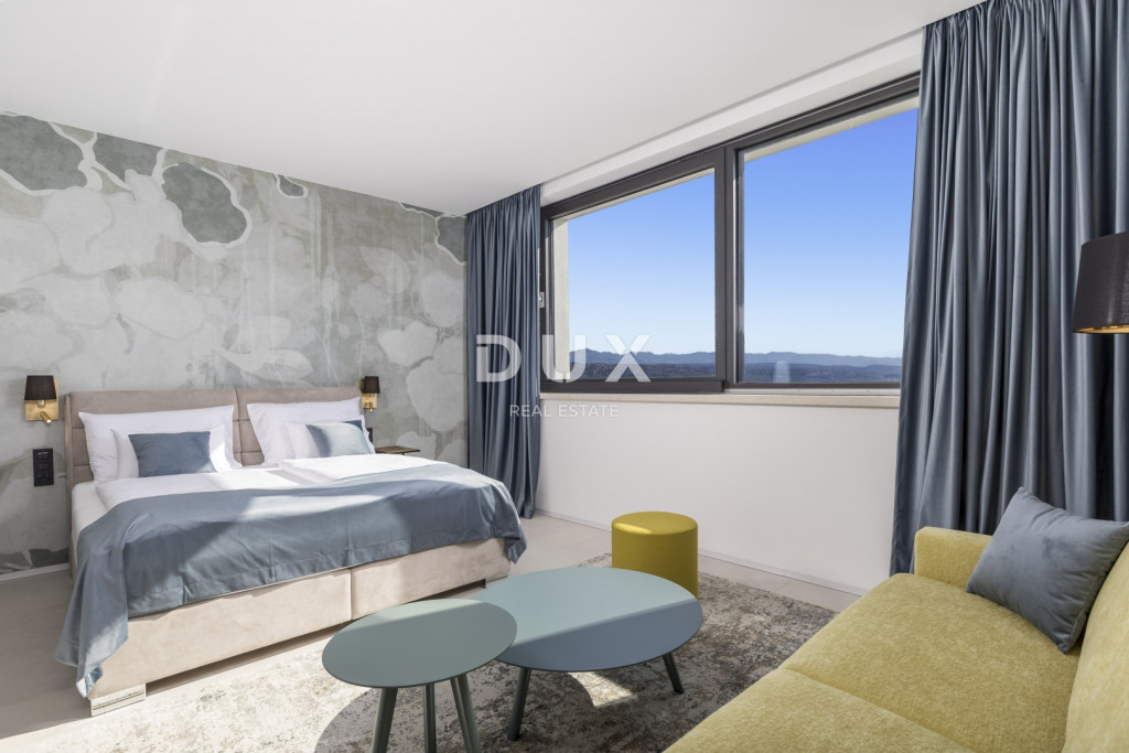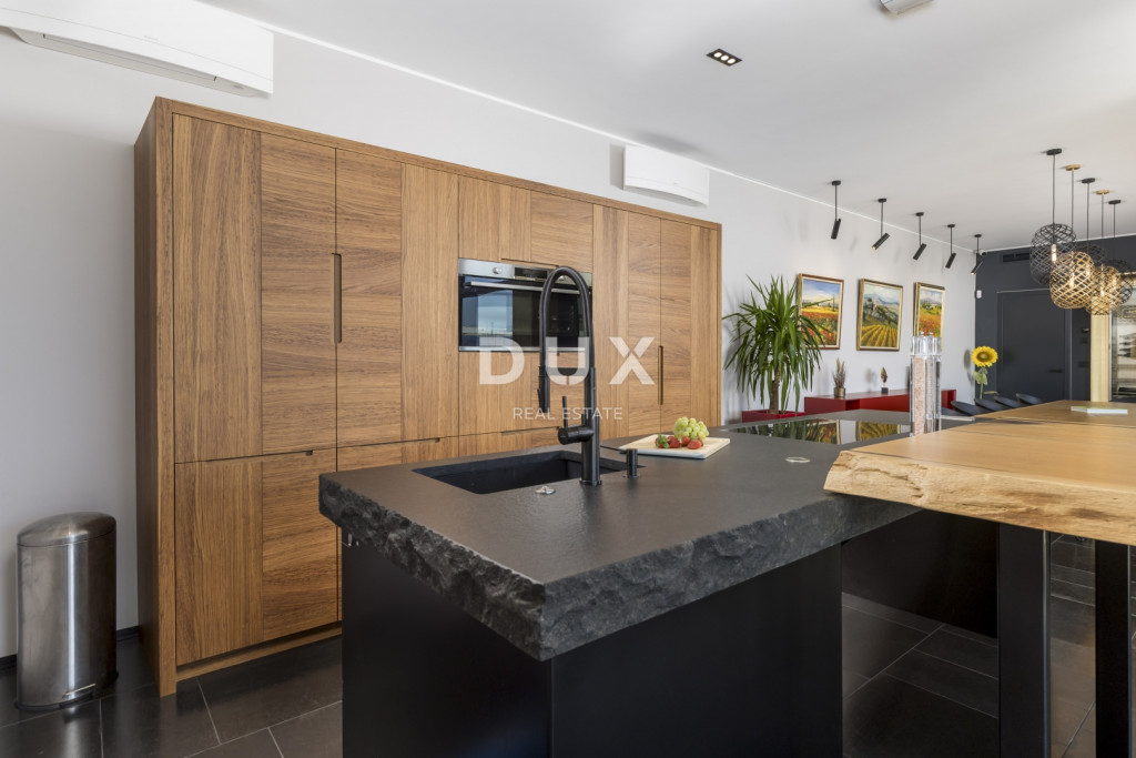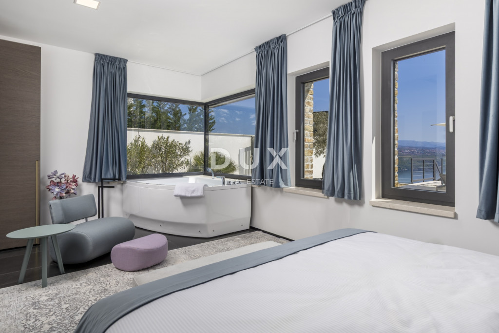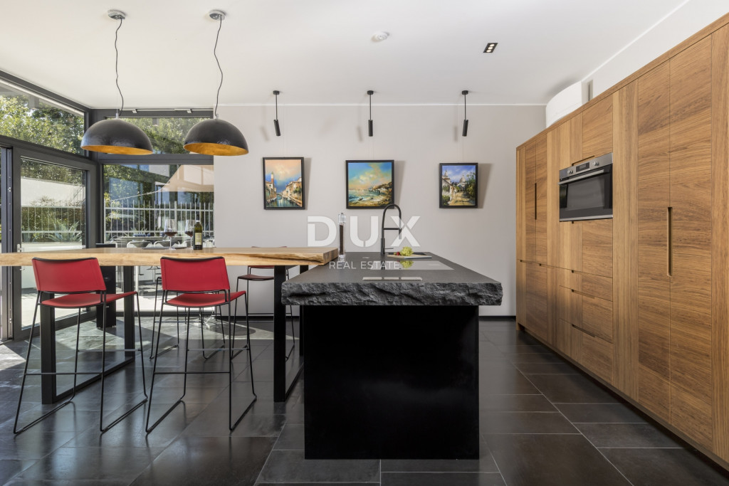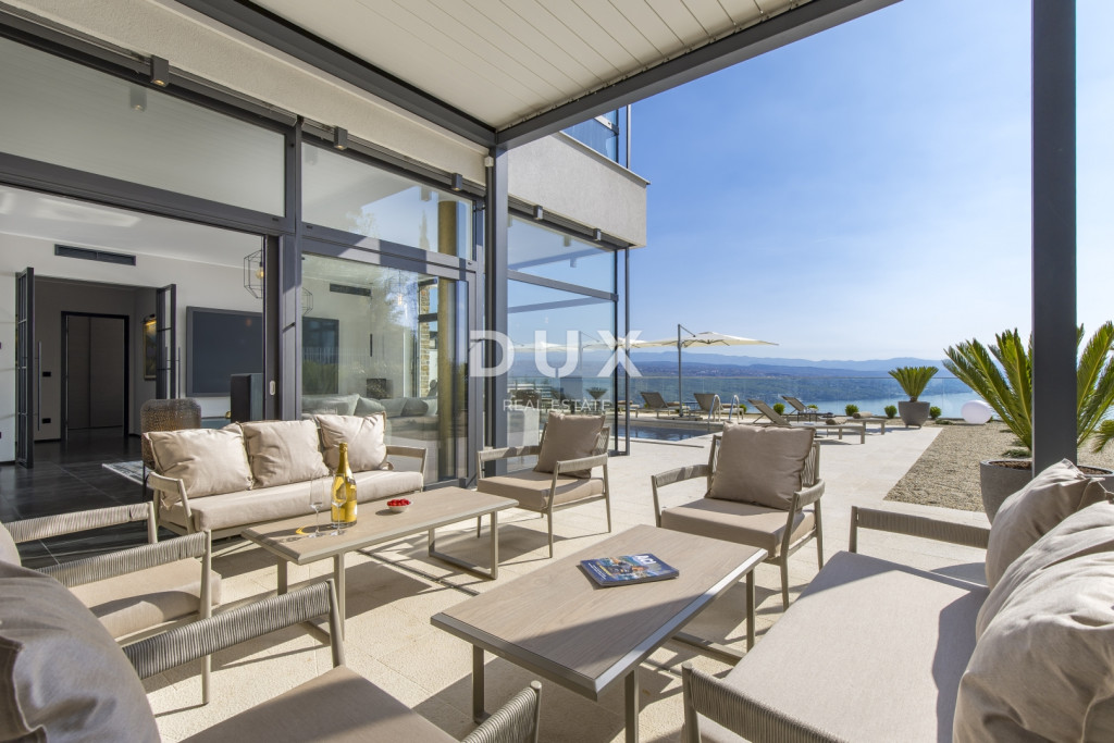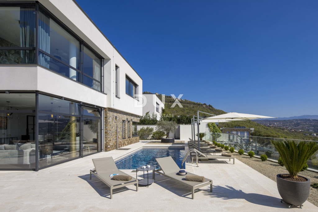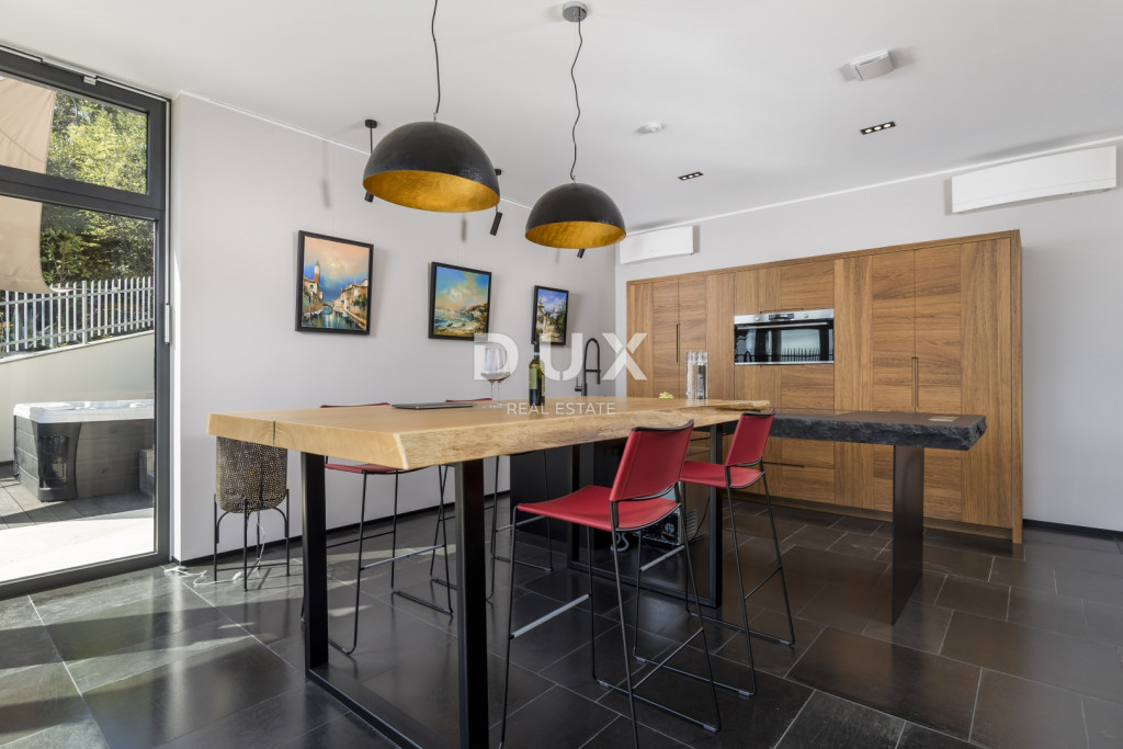 Abbázia központja felett, egy csendes és tekintélyes lakókörnyezetben található egy exkluzív, modern, ötcsillagos villa, amely a luxus, a magánélet és a lenyűgöző panorámás tengerre néző kilátás tökéletes kombinációját kínálja.