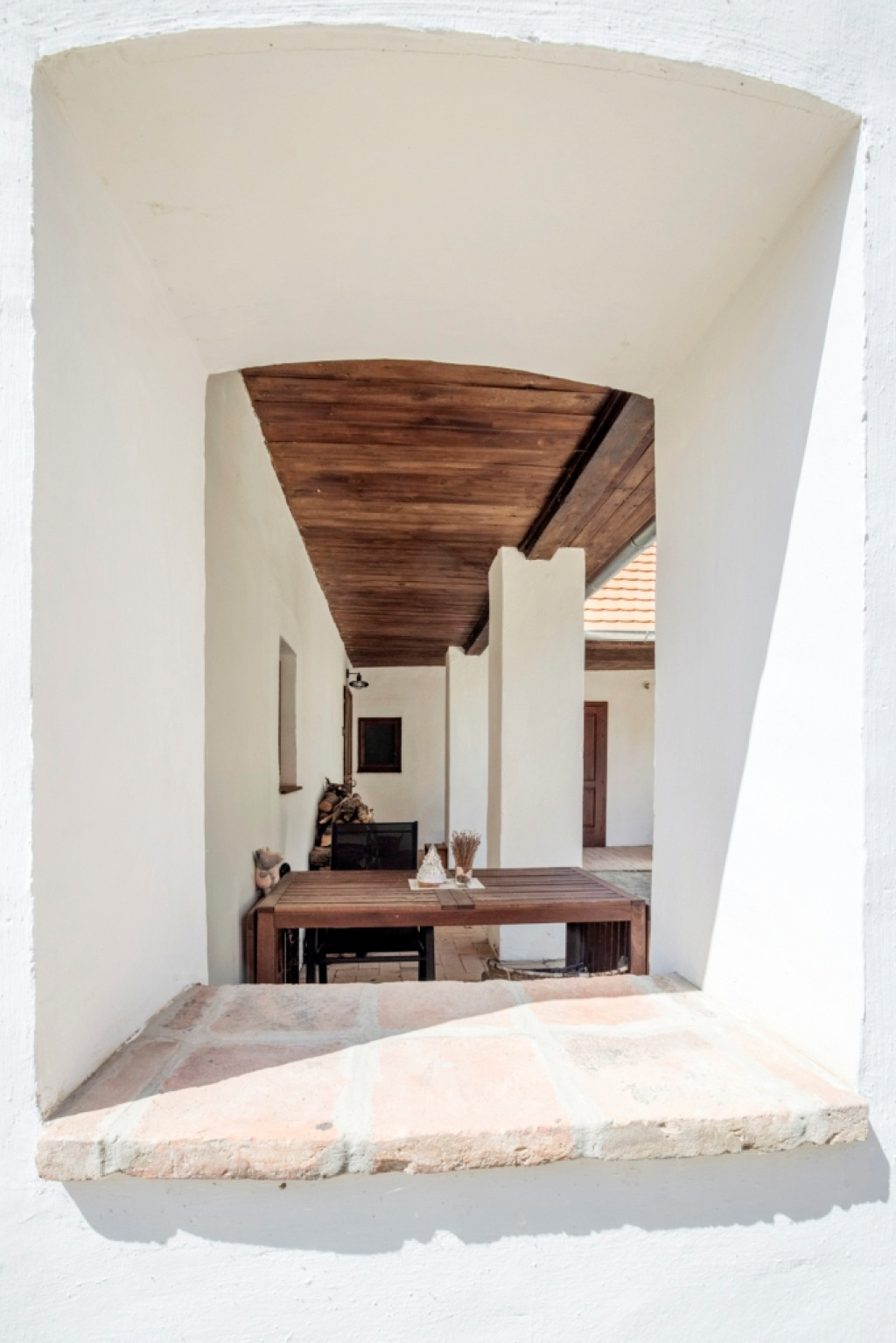 Minden nyílászáró szúnyoghálós, az ablakok tulipános faragású fa spalettásak.