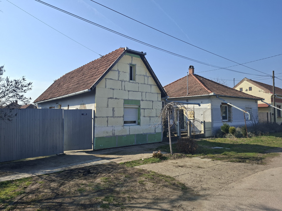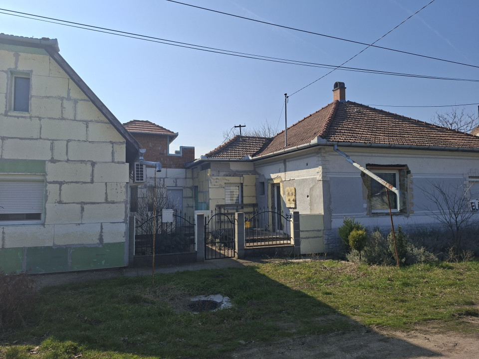 A két részből àlló épületkomplesszum egyik eleme a 90 nm-es hàzrész, mely vegyes falazatú, felújítás alatt áll. Villany, víz, szennyvíz van. Gázcsonk telken belül. Az egykori kockaház nagy átalakuláson ment át, egyedi kialakítású alaprajzot kapott.