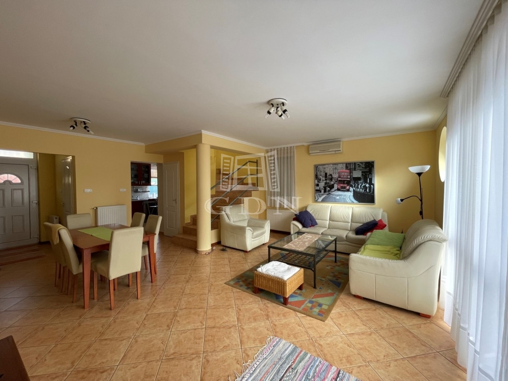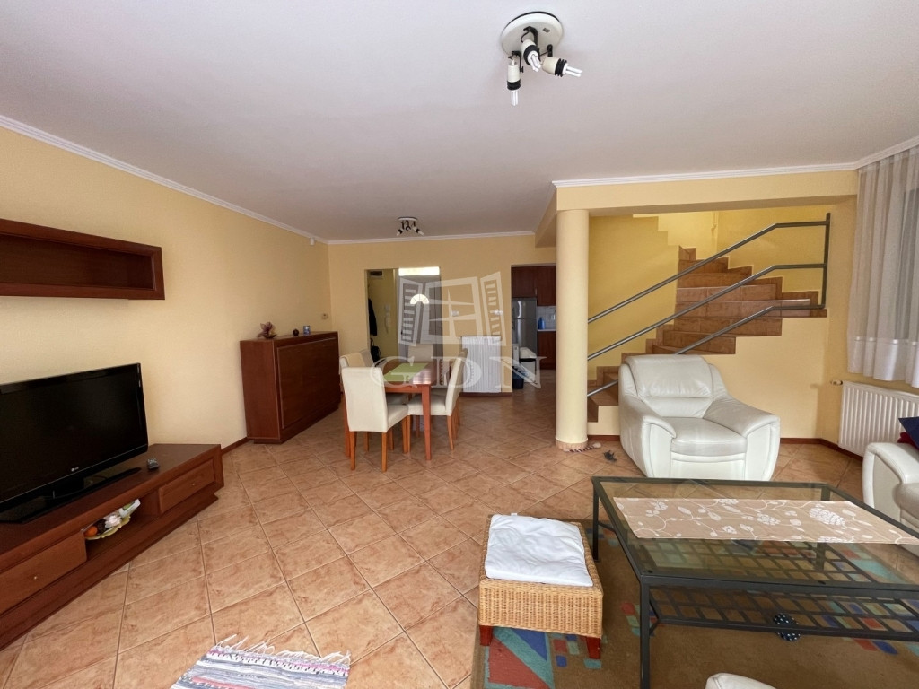A lakás két szintes, 115 nm alapterületű és az alábbi helyiségek kerültek kialakításra: