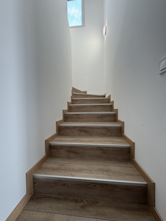 Az ingatlanban a földszinten fedett előtér, előszoba, egy amerikai konyha étkezős nappali + gardrób + 2 szoba + háztartási helyiség + tároló + fürdőszoba + WC került kialakításra, az emeleten 2 szoba, fürdőszoba, WC, gardróbszoba található. Parkolás 1 kocsi számára fedett parkoló, illetve a ház előtt térköves udvari beálló.