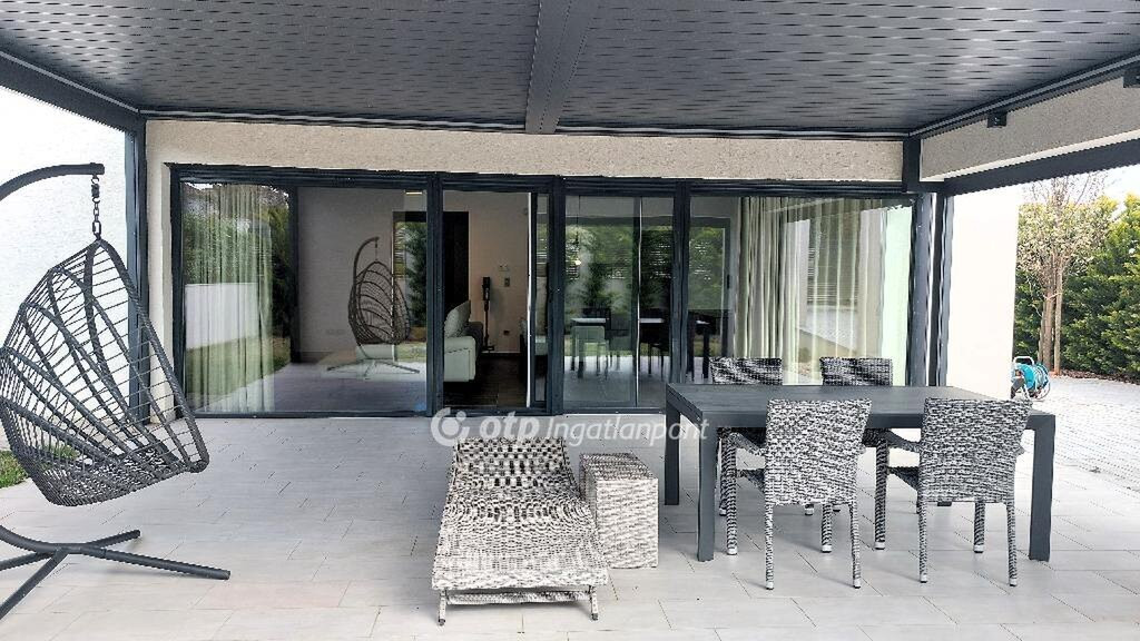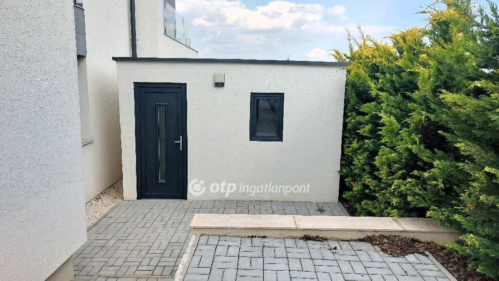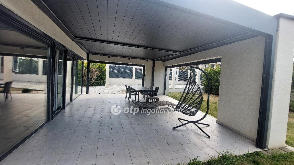 A tágas terasz felett elektromos pergola biztosít kellemes árnyékot, a kertben pedig két autó számára parkolási lehetőség áll rendelkezésre. Az udvaron egy zárható kerti tároló is található.