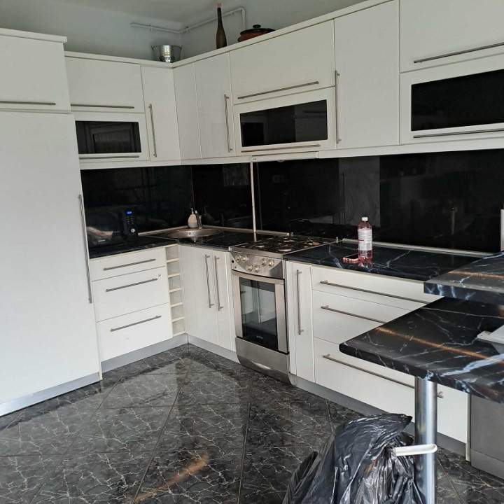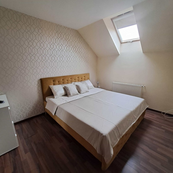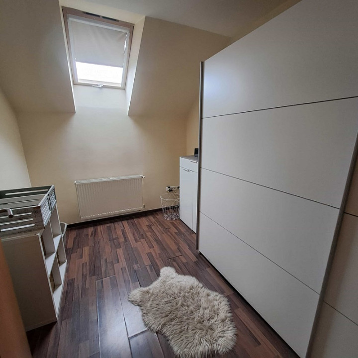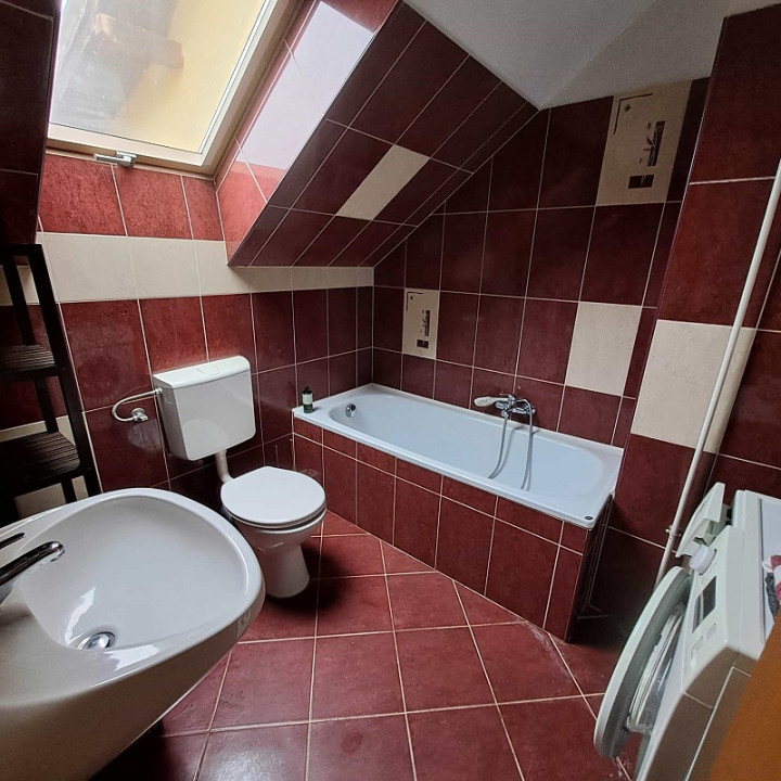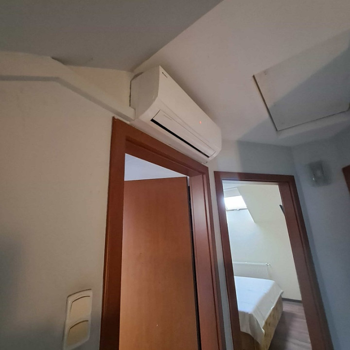 A lakás teljesen bútorozott, a konyha gépekkel felszerelt, a fürdőszobában mosógép van. A tetőtéri előtérben inverteres klíma található.