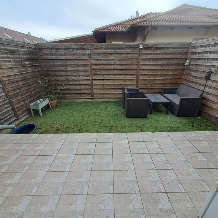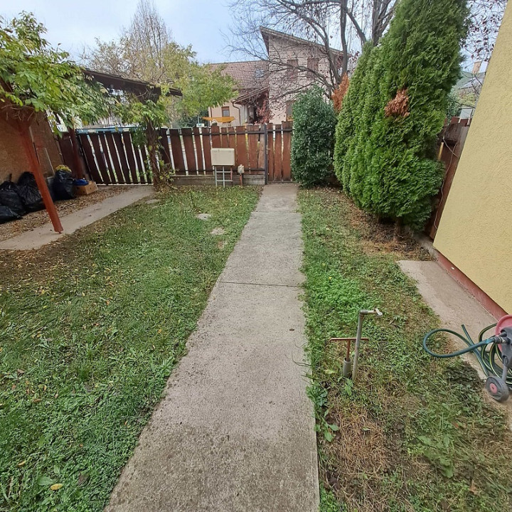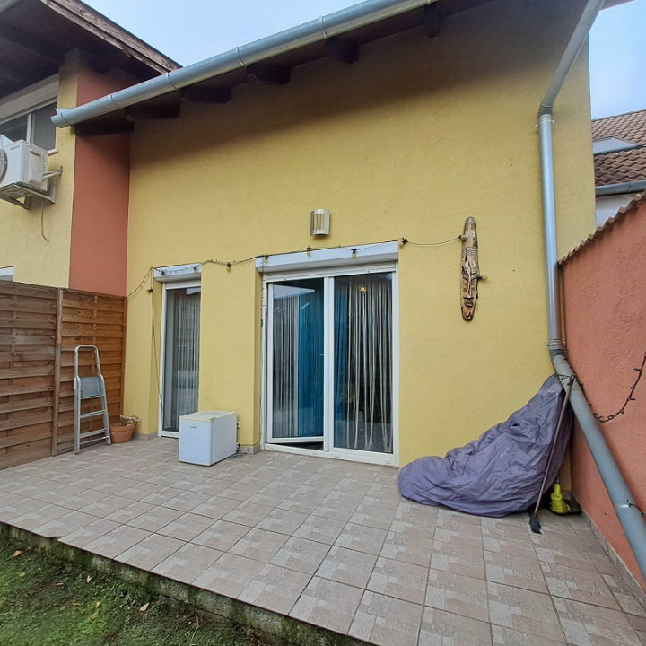 A lakás előtti telekrészen fedett kocsibeállási lehetőség van, illetve hátul terasz, és műfüves terület található.