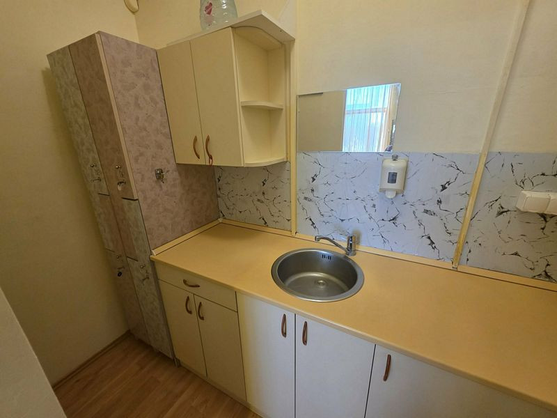 Az iroda felosztása: előtér, váróterem, 2 tárgyaló, teakonyha, tároló (vagy gardrób, öltöző), fürdőszoba + wc.