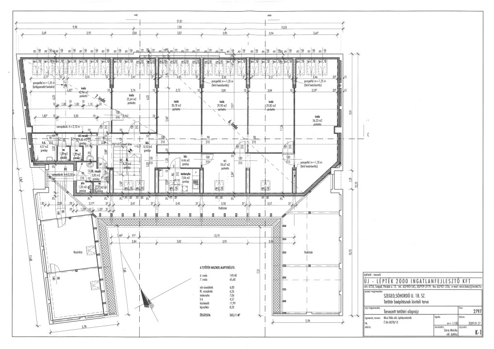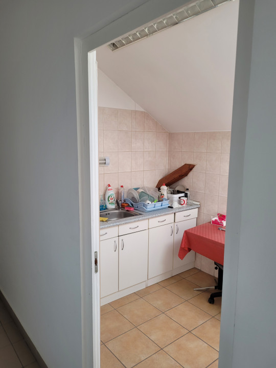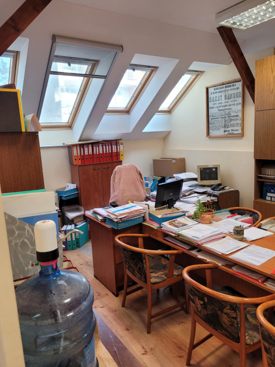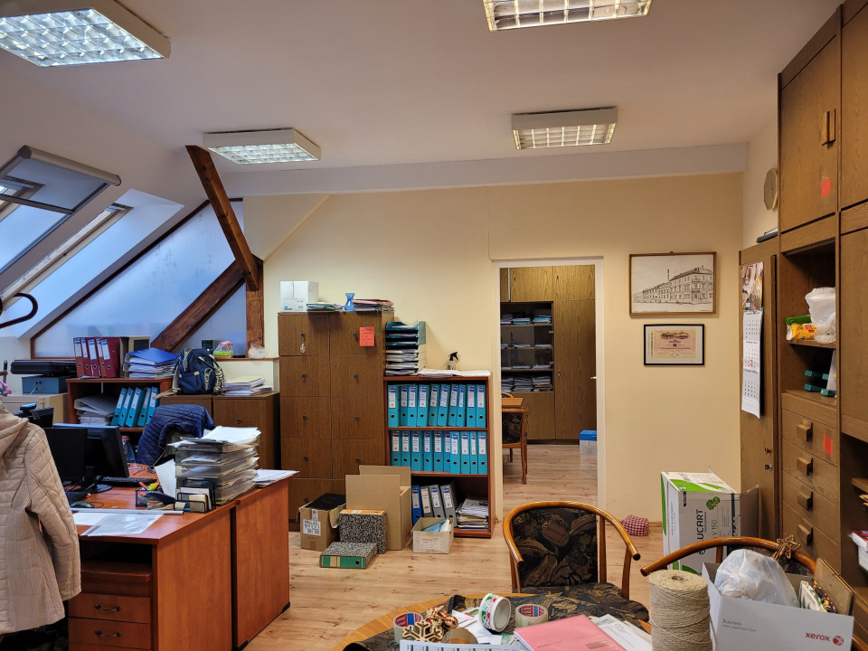 A tetőtérben 65 m2 két helyiséges iroda + 29 m2 egy helyiség, összenyithatóak, a szinten külön wc-csoport és teakonyha.