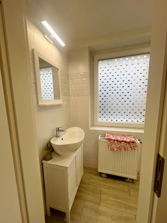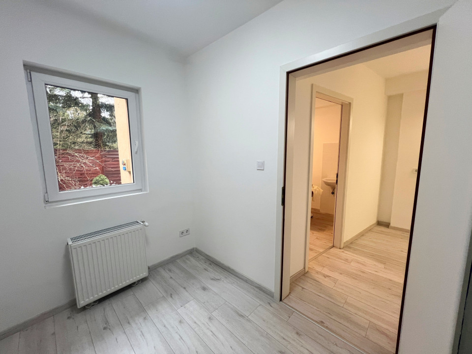 Helyiségek: előtér, recepciónak kialakítható helyiség (kb. 30 nm), abból nyíló, világos szoba (15 nm), közlekedő, fürdőszoba (zuhanyzó + Wc), 2 szoba (kb. 7-8 nm). Konyha nincs, kis sarok kialakítható, ahova hűtő, microhullámú sütő elhelyezhető.