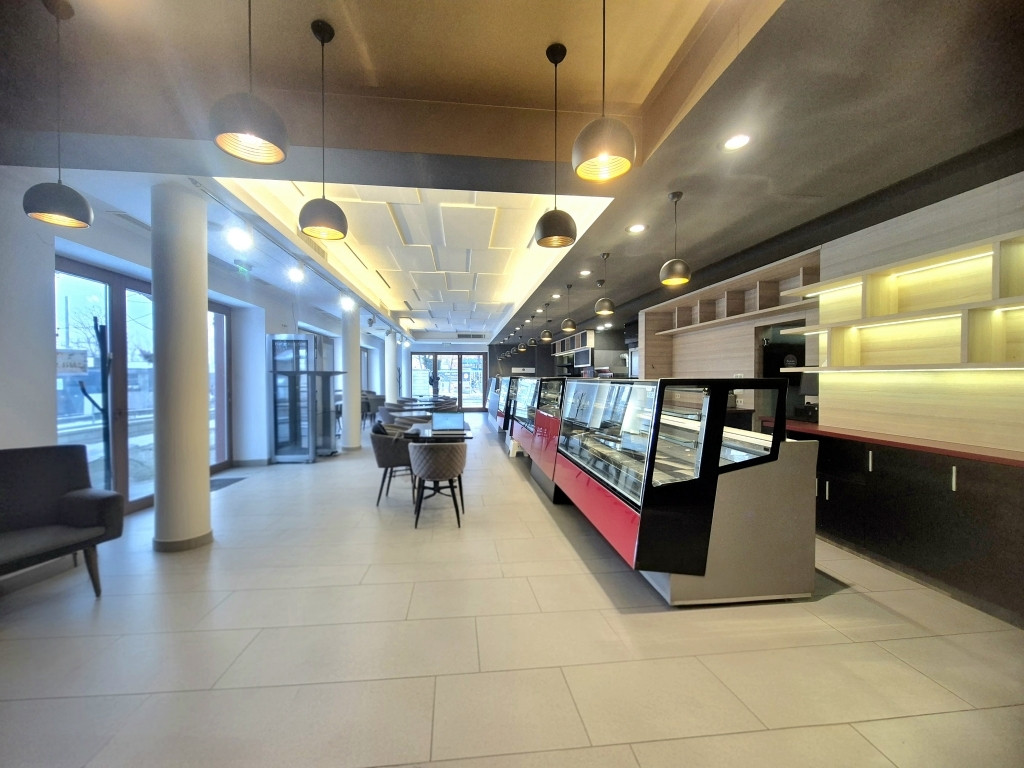 Budapest III.kerületében, forgalmas út mellet terasszal is rendelkező 130 nm-es üzlethelyiség kiadó, melyhez tartozik egy 220 nm alapterületű termelő üzem is, mely a mai kornak megfelelő gépekkel, berendezési tárgyakkal van ellátva.