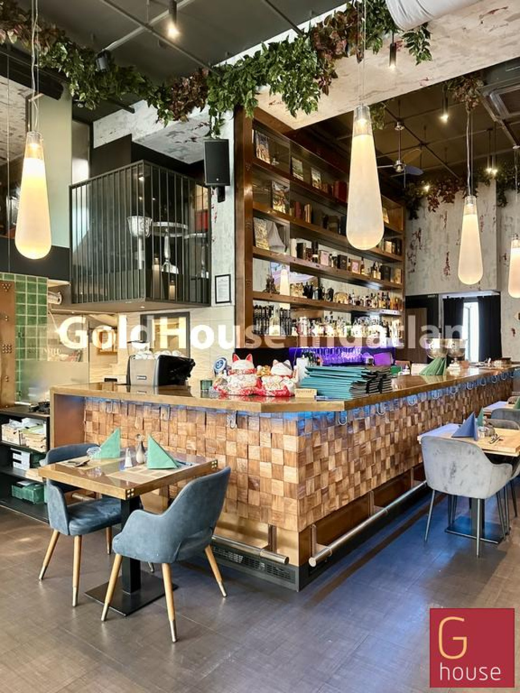 A helyiség földszintje 108 négyzetméteres, ahol a vendégtér és a professzionálisan felszerelt konyha kapott helyet, a 60 négyzetméteres galéria szintjén pedig elegáns privát terem, vendégmosdók, szociális helyiségek és öltözők találhatók.