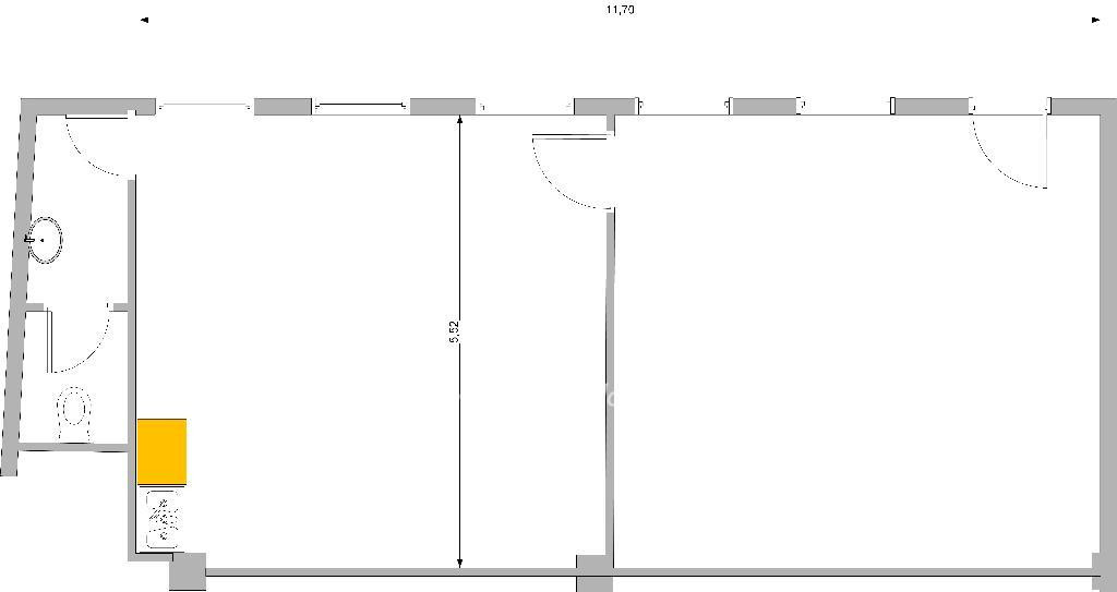 Bejárat a belső udvarból. Az irodatér jelenleg két helyiségre oszlik, a belső iroda teakonyhával rendelkezik. A válaszfal igény esetén áthelyezhető, további válaszfal beépíthető. A belső irodából közelíthető meg a vizesblokk.