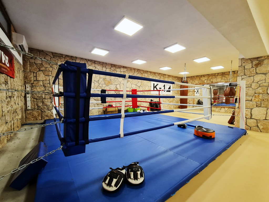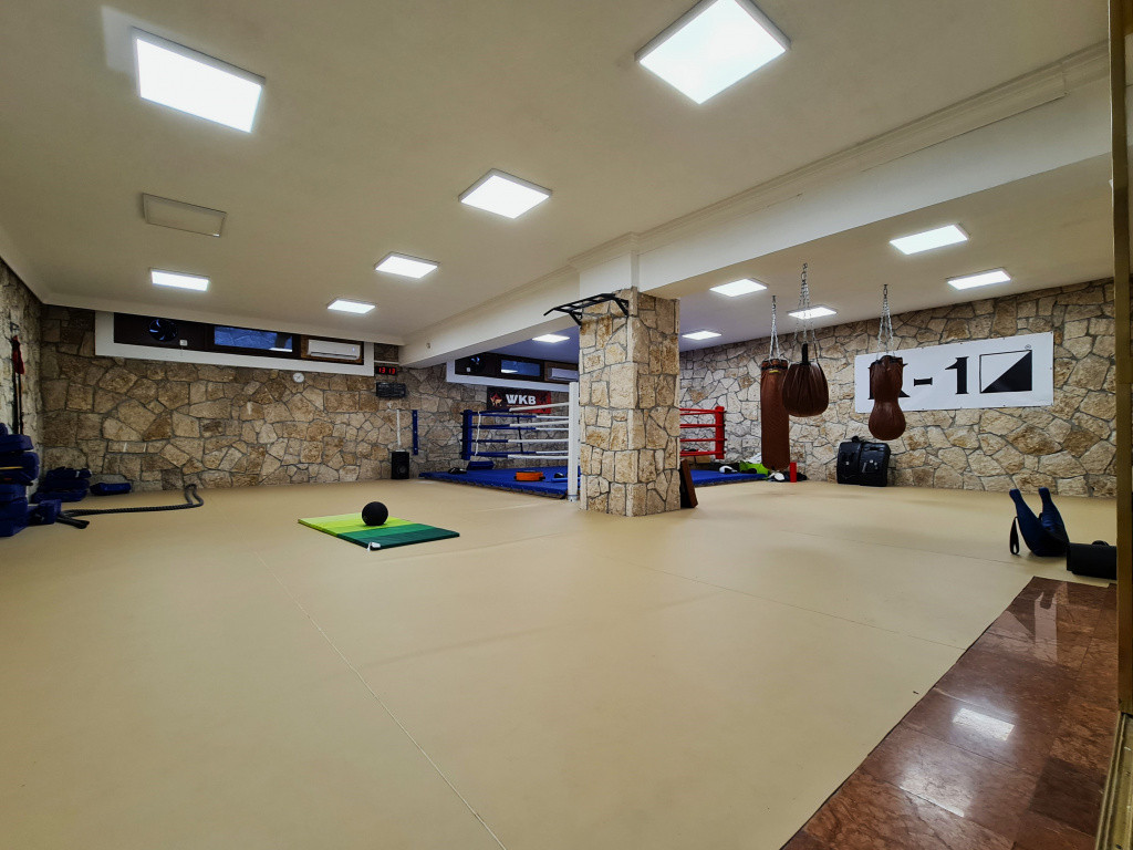 A teljesen és igényesen felszerelt edzőtere és a hozzá tartozó kiegészítő helyiségekkel. összesen 300 m2-es. Maga az 123 m2-es edzőterem teljes felülete sportpadlóval van borítva amely ideális küzdősportok gyakorlásához is.