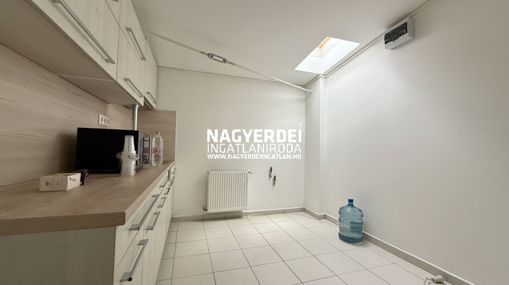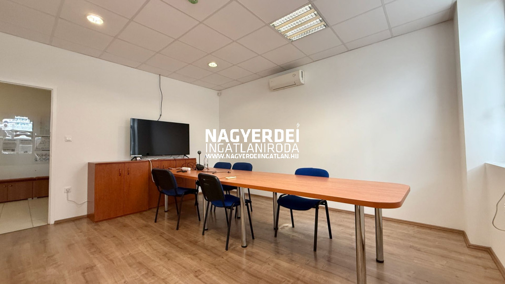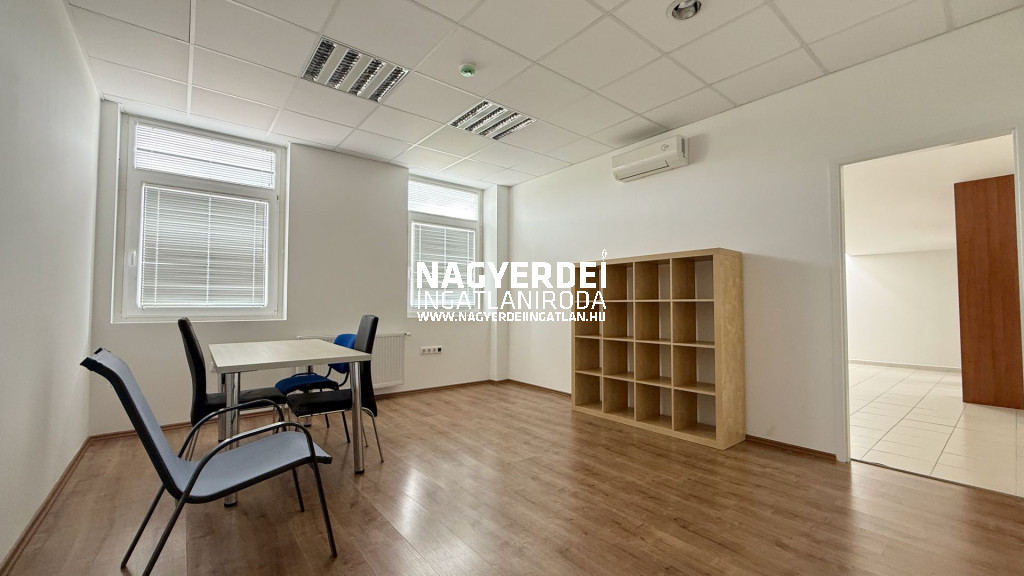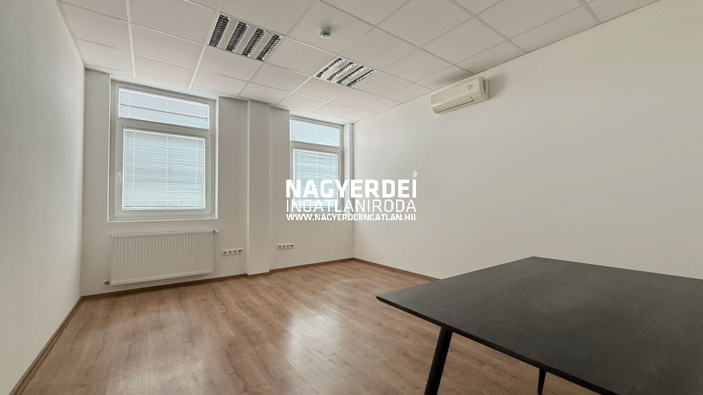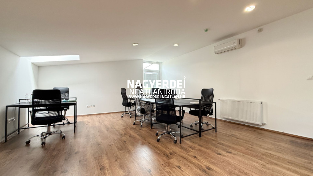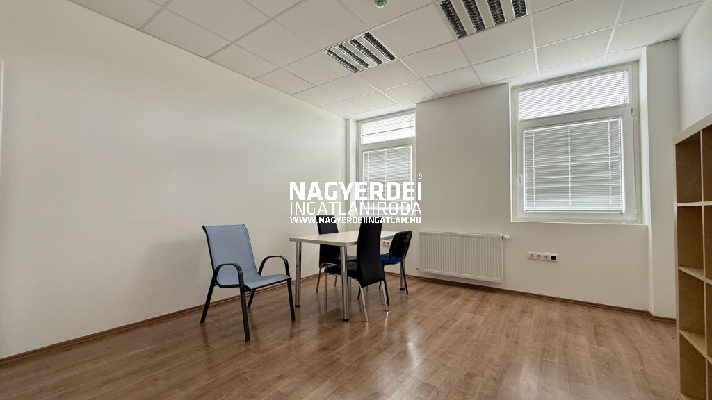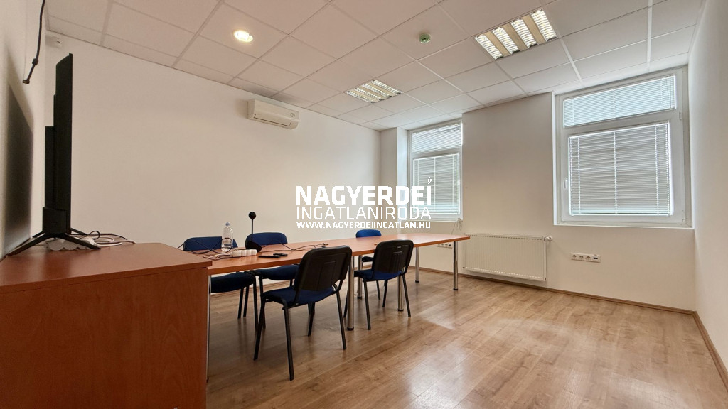 Debrecen-József Attila district: Renovated office building for rent, 192 square meters. The property includes offices and meeting rooms (a total of 5), a kitchen, a bathroom-toilet, and a separate toilet. Free parking is available in front of the building. The listed price includes utility costs.