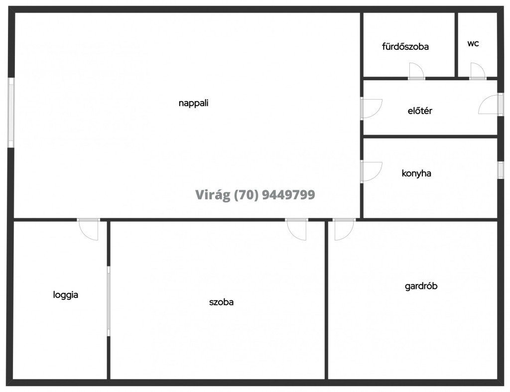 - Elrendezés, előszoba, konyha , nappali, 2 külön nyíló szoba, fürdő, WC, 8 m²-es loggia.
