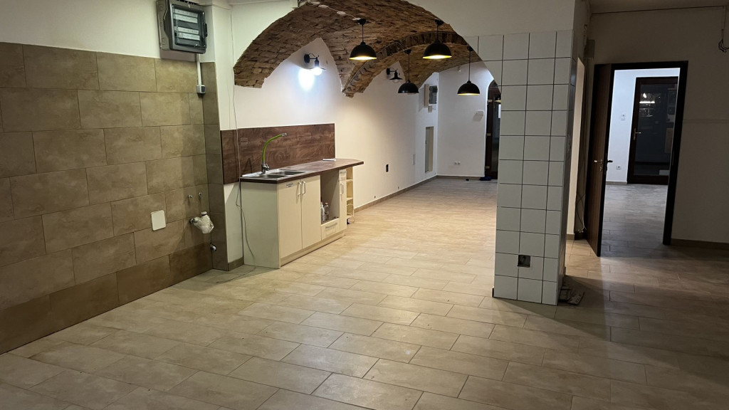 Az üzlethez tartozik egy 9 m2-es fedett kis udvar. A víz szigetelt pince, amely 2 részből áll pluszban 45 m2, mely akár raktárnak vagy üzlettér bővítésnek is használható.
