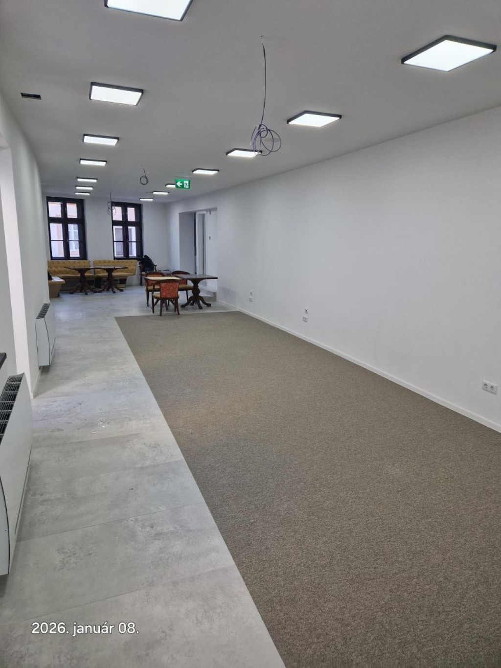 Az ingatlan az épület első emeletén található, amely két nagyobb területű részből áll. Ezen felül kialaításra kerüllt egy vezetői iroda, teakonyha, valamint külön női és férfi mosdók.