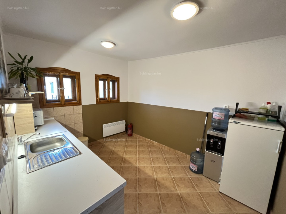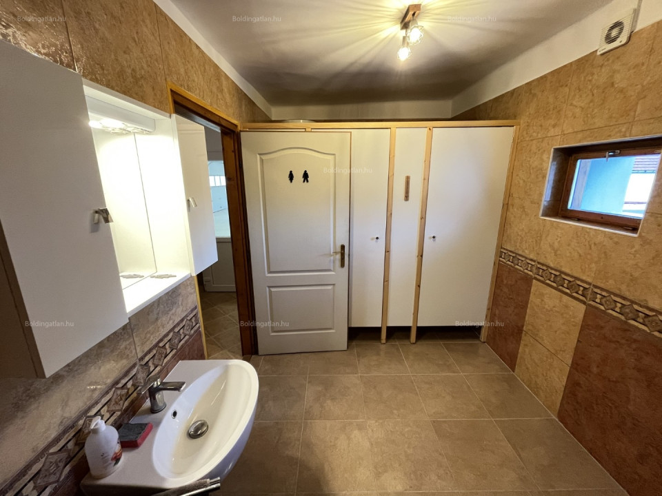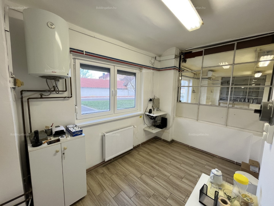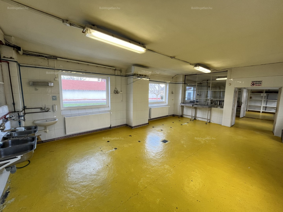 Kaposváron (Kaposfüred városrészben) az Állomás utcában rendezett környezetben található, 2024-ben felújított telephelyen 223 m2-es raktár-iroda épület + 190 m2 akár élelmiszergyártásra is alkalmas épület kifejezetten hosszú távra - kizárólag egyben kiadó. A 223 m2-es épületben 3 iroda, közlekedő, konyha, zuhanyzó-wc, valamint egy 9 m2-es és egy 144 m2-es raktár 2 db garázsajtóval, akár 3 tonna teherbírásra erősített födémmel helyiségek találhatóak. A 190 m2-es épületben előtér, labor, 2 gyártóhelyiség, külön férfi és női zuhanyzó-wc, garázs-kazánház helyiségek találhatóak. Az épületek fűtése Brötje kombi kazánnal és elektromos fűtőpanelokkal megoldott, valamint a kisebbik helyiségben Gree típusú hűtő-fűtő légkondícionálók is felszerelésre kerültek. Az épületek tökéletes műszaki állapotban vannak, az udvarban több teherautó is elfér, egy része térkővel borított. Az udvarra behajtás 2 db távirányítású kapun keresztül lehetséges, valamint kamerás riasztó rendszer is telepítésre került. Telek: 2.235 m2 Bérleti díj: 500.000.- Ft/hó + rezsi + 2 havi kaució (823) Amennyiben az ingatlan felkeltette az érdeklődését, kérem hivatkozzon a 823. számú ajánlatra! Irodánk címe: Kaposvár Irányi D. u. 9.