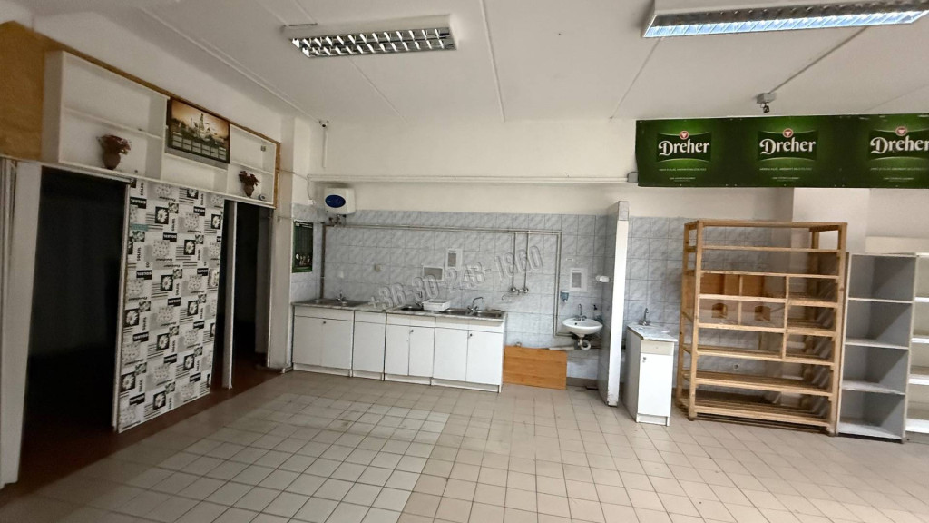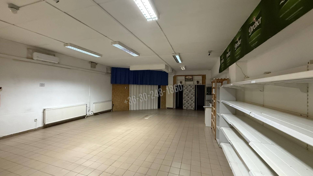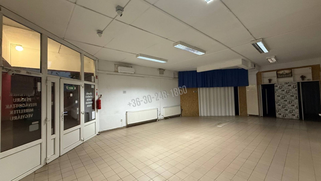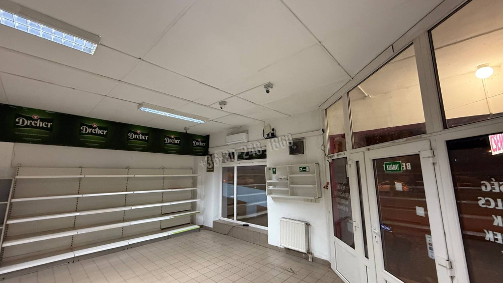 ÜZLETTÉR + RAKTÁR + IRODA + MOSDÓ WC + HÁTSÓ BEJÁRAT. (RIASZTÓ , KAMERA)