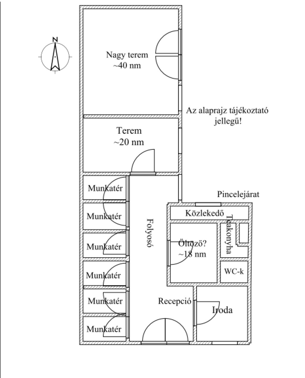 - a munkaterületként jelölt helyiségek falazata nem ér mennyezetig, és bontható is