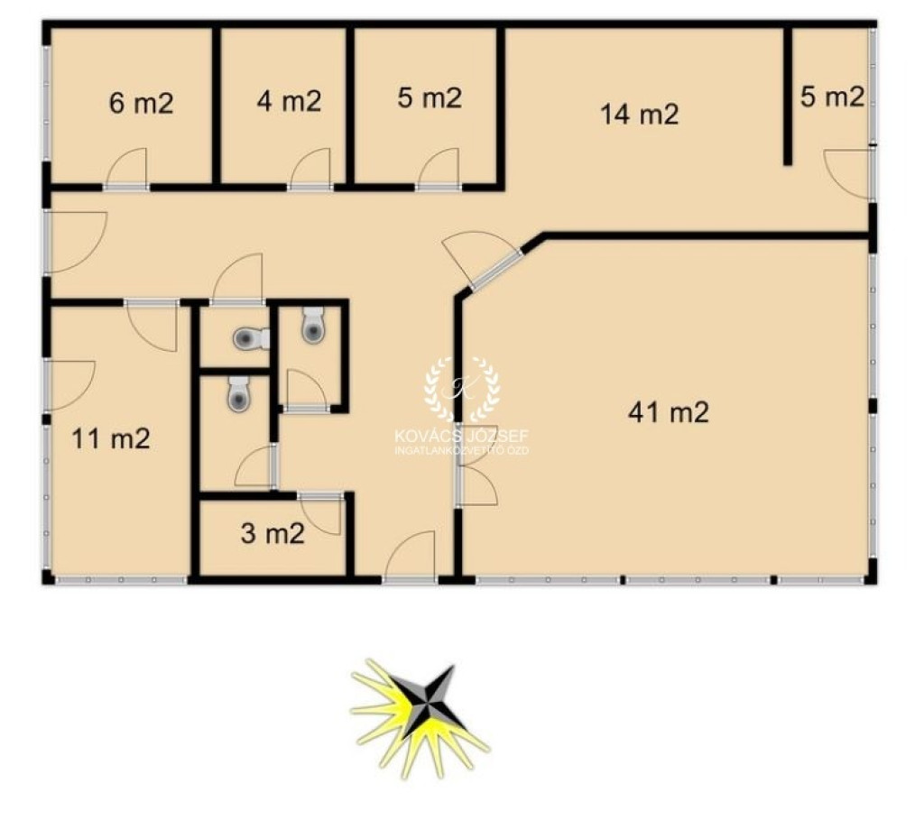 Külön férfi - női és személyzeti mosdóval rendelkezik, külön öltözővel, irodával , raktárral valamint több fal gipszkartonból épült, vagyis áthelyezhető, az aktuális üzlethez lehet igazítani.