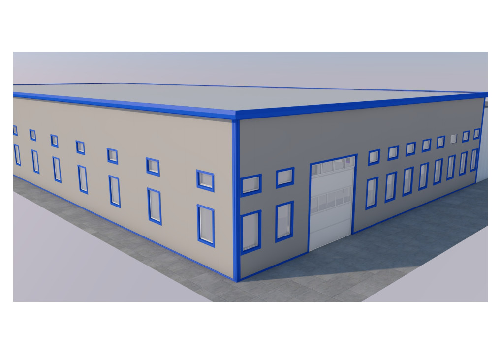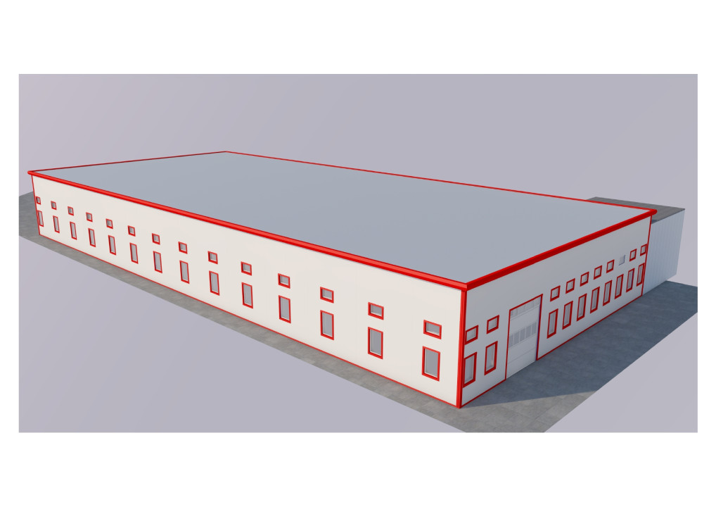 - Az épület acél vázas, szendvicspanel vagy trapézlemez oldalfalakkal, tetején új hőszigetelt PVC fedés;
