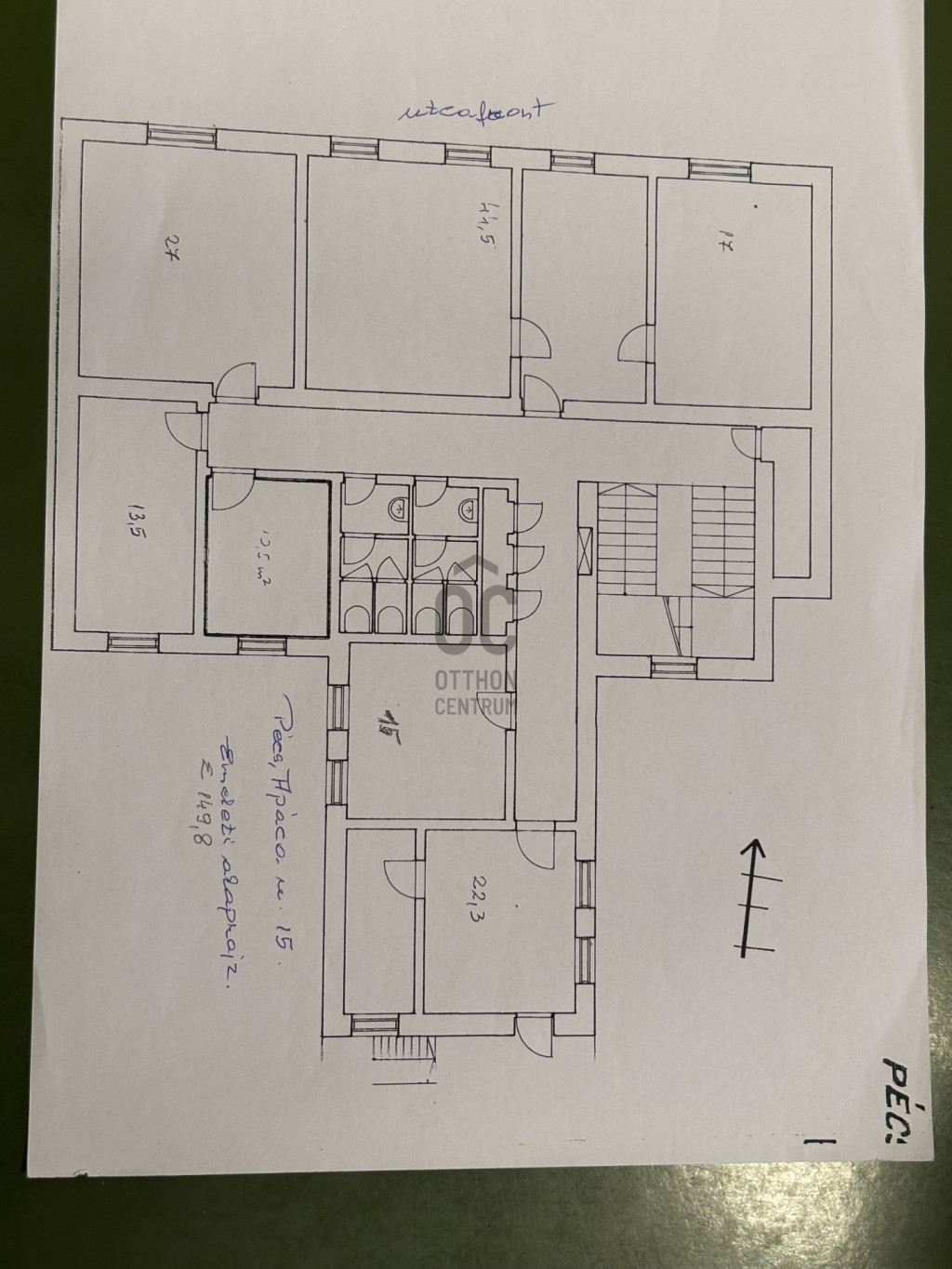 Pécs belvárosában, az Apáca utcában kiadó egy 17 m²-es irodahelyiség az 1. emeleten, rendezett épületben.