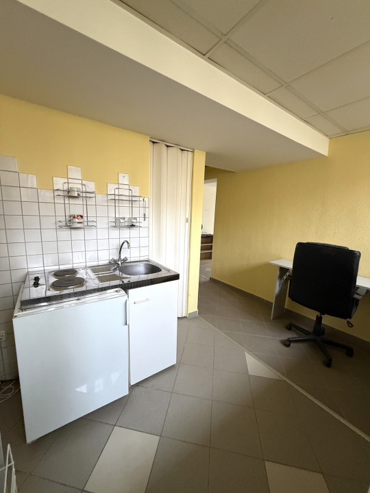 A hátsó helyiségben egy kisméretű konyhabútor is kialakításra került, így főzésre is alkalmas.