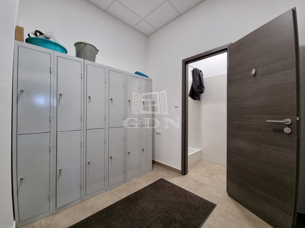 fszt.: 125m2 (előtér, ügyféltér/iroda, teakonyha, női/férfi öltöző zuhanyzóval)