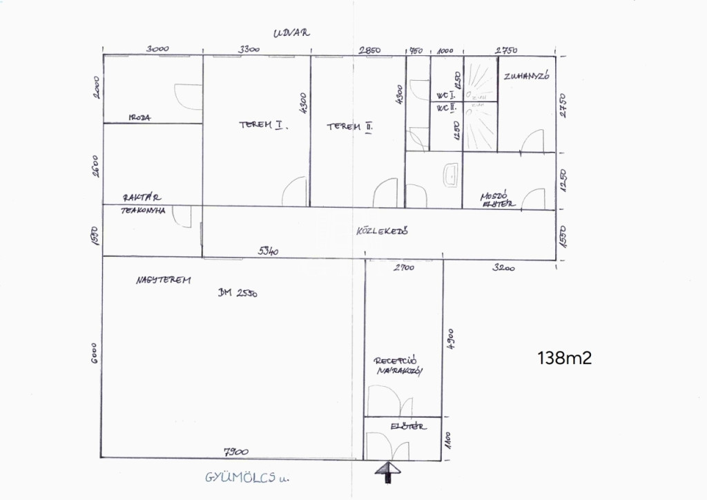 Az üzlethelyiség jelenleg két részre, egy 138m2 és egy 162m2 alapterületű egységre van bontva. Igény esetén összenyitva, egyben vagy megosztva, a jelenlegi állapotában is bérbe vehető.