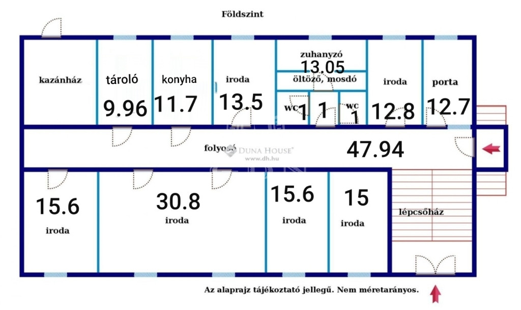 - folyosón közös használatú női-férfi mosdó