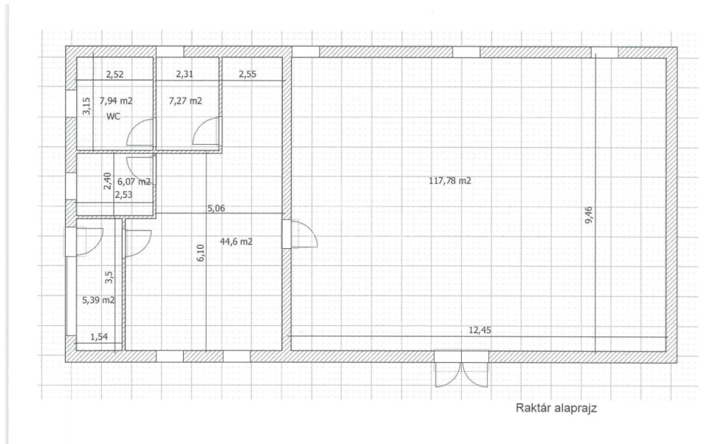 ⁃ iroda, öltöző: 71m2 (fűtött)