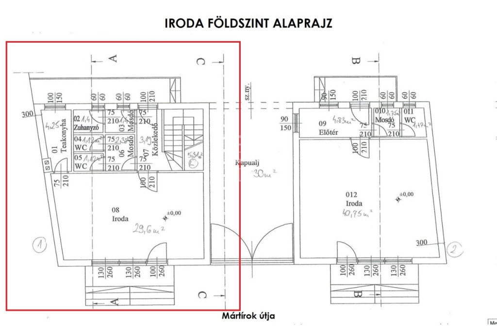 Bip-003221. Mártírok útján 120m2 összalapterületű iroda / üzlethelyiség kiadó!