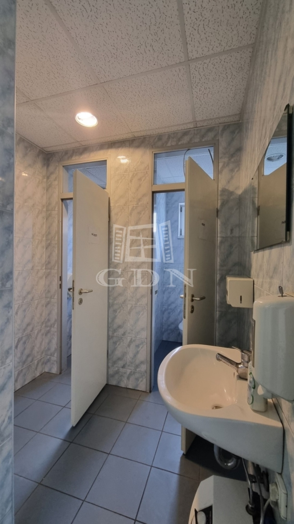 Elosztását tekintve egy egylégterű eladótérből, egy női/férfi mosdóból, egy teakonyhából és egy kis irodából áll.