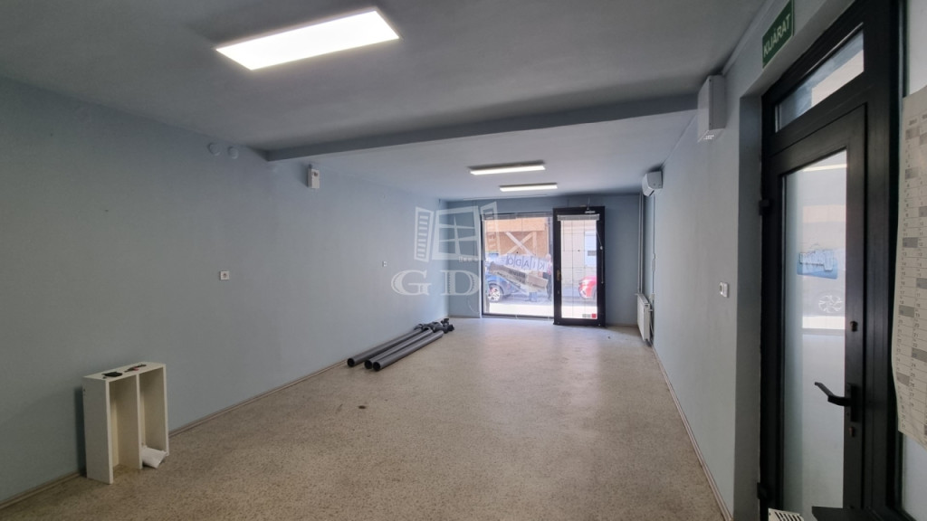Az üzlethelyiség három részből áll: egy 35 m²-es utcafronti helyiségből, egy 14 m²-es raktárból, valamint egy hátsó vizesblokkból.