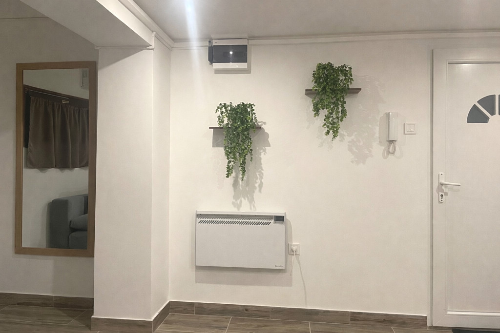 A fűtést hűtő-fűtő klíma és elektromos panel biztosítja, a használati melegvizet elektromos bojler szolgáltatja.