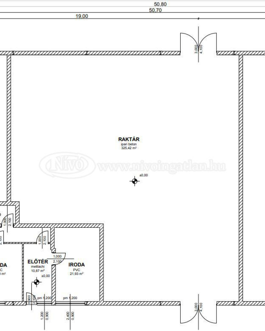 - össz. raktár: ~700 m2 két épületben; 325 m2 és 360 m2