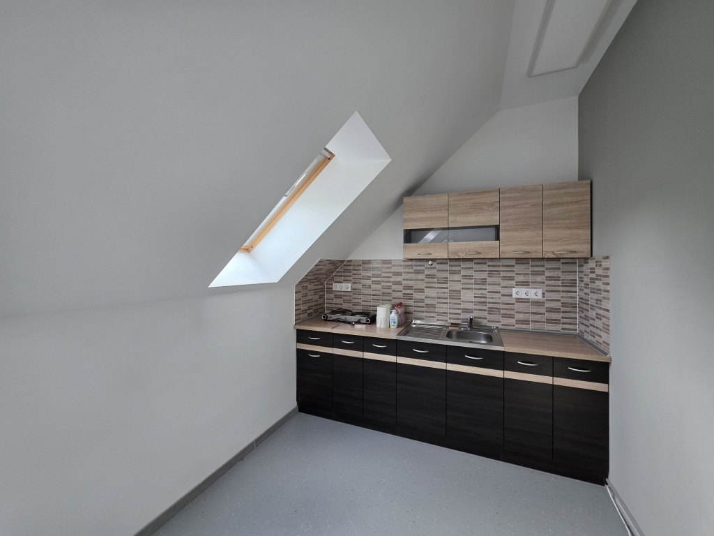 A lakás elrendezése: bejárati ajtón belépve előszoba, abból nyílóan fürdőszoba található. Szemben egy légtérben egy amerikai konyhás nappali (konyhabútorral), mely szobaként is funkcionál, hiszen külön hálószoba nincs kialakítva.