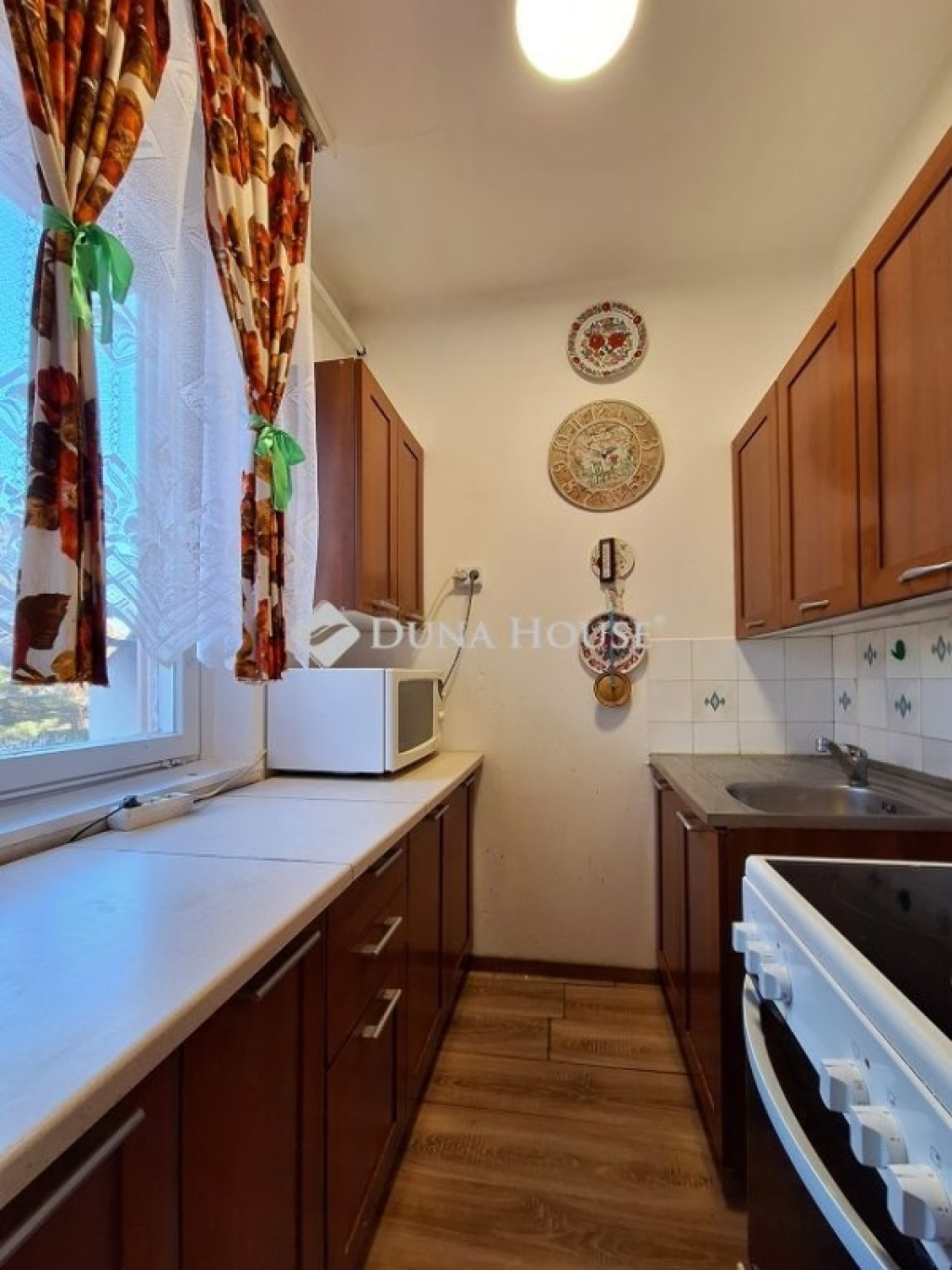 A lakás a 2. emeleten található, csendes, zöld környezetben, kétemeletes panelházban.