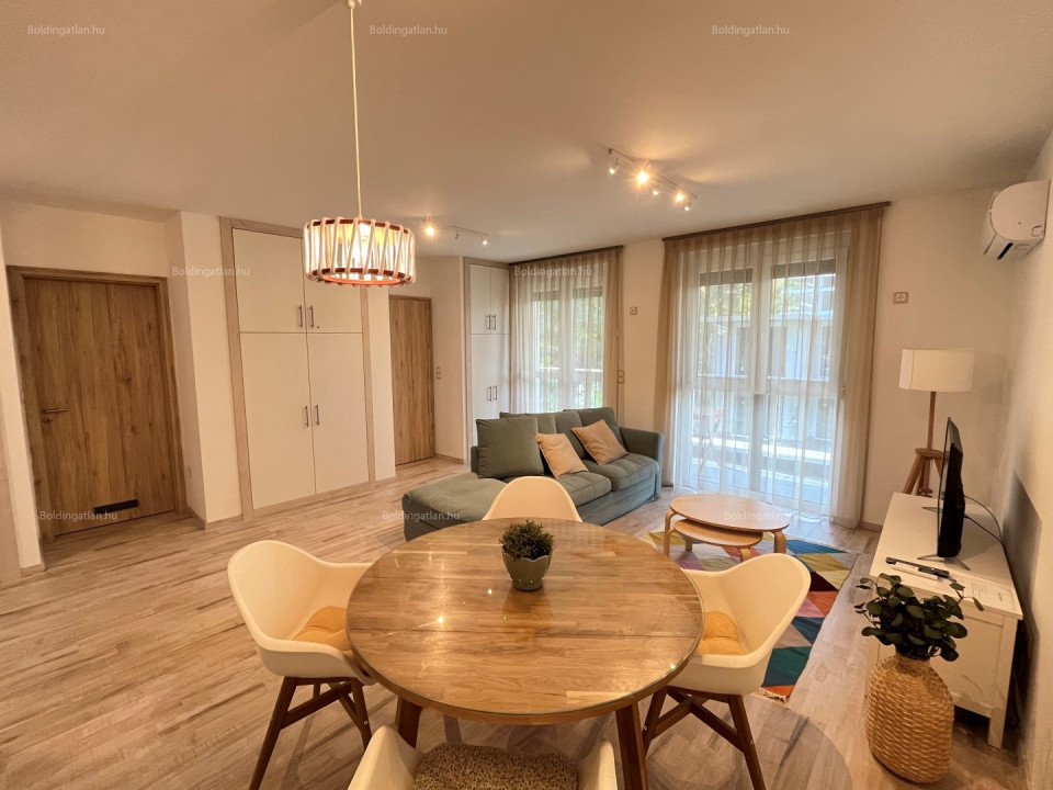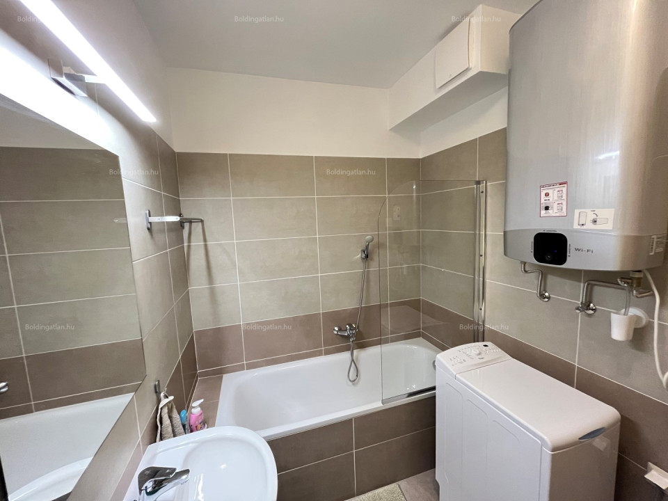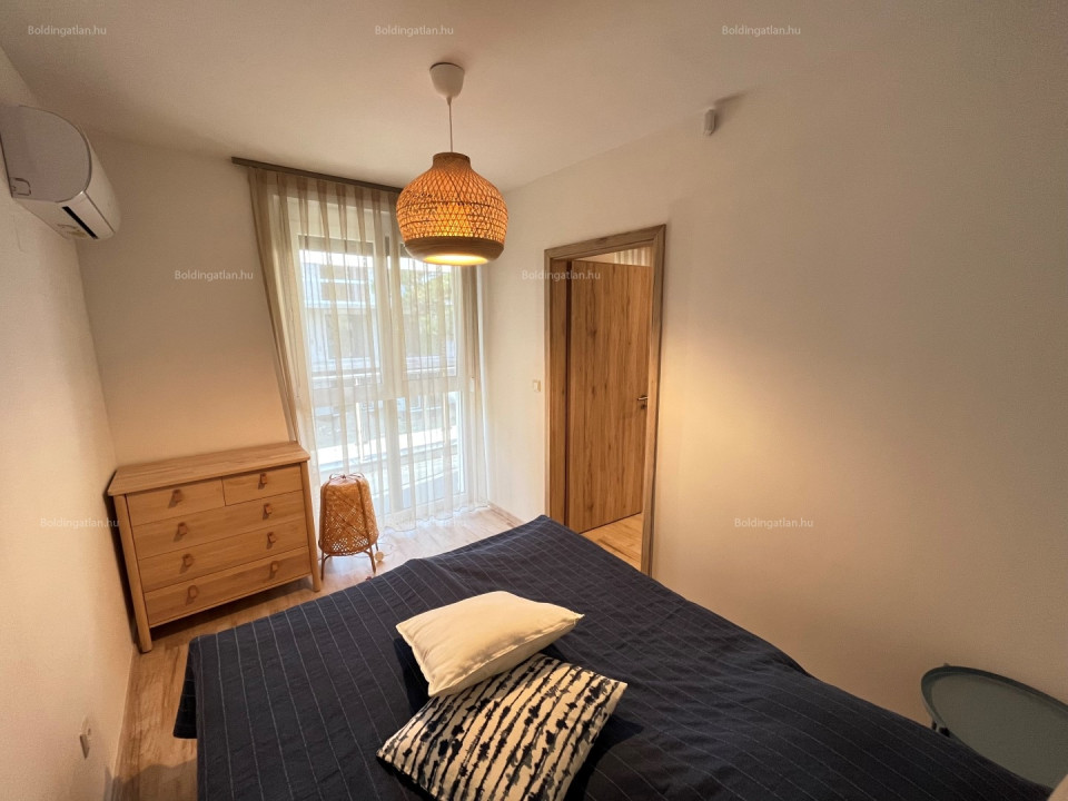 2026.05.31-IG!!! Balatonlellén a központ közelében, - a parttól nem messze - rendezett társasház 1. emeletén található, 48 m2-es - igényesen kialakított és berendezett - modern lakás kiadó. A lakásban előszoba-étkező-nappali, 1 szoba, fürdőszoba-wc helyiségek találhatóak, illetve a nappaliból kilépve nagy terasz is van. A fűtése légkondicionálokkal megoldott, továbbá riasztó is van felszerelve - a lakáshoz tartozik 1 db személyautó részére beállóhely is. A tulajdonos a lakást legfeljebb 2 felnőtt személy részére kívánja bérbe adni, a dohányzás és a kisállat tartása nem engedélyezett. Bérleti díj: 150.000.- Ft/hó + rezsi + 2 havi kaució