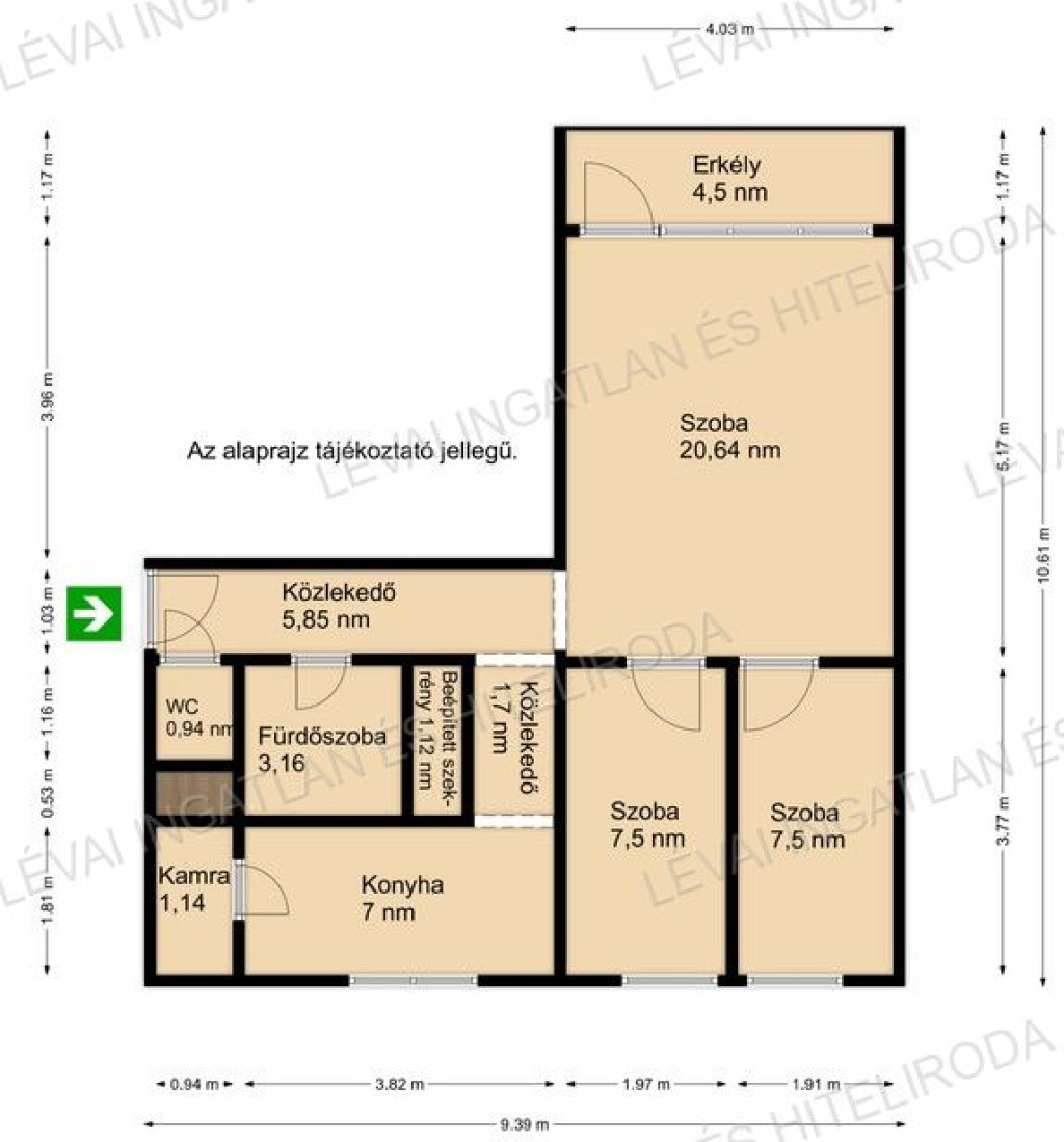 - nappaliban illetve egyik szobában laminált parketta a másik szobában padlószőnyeg