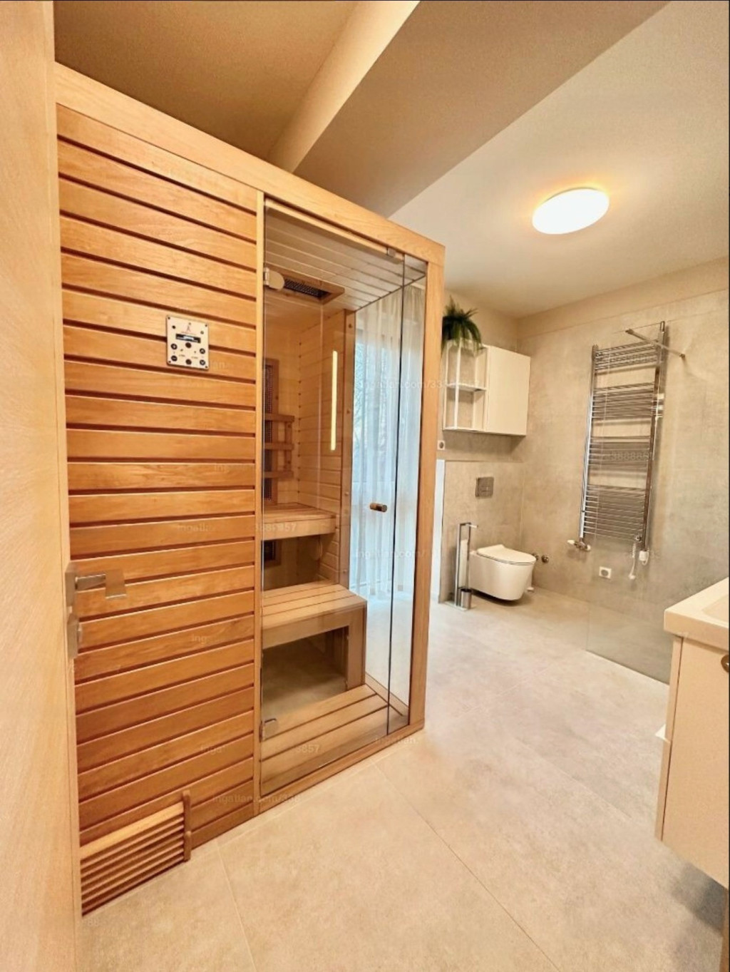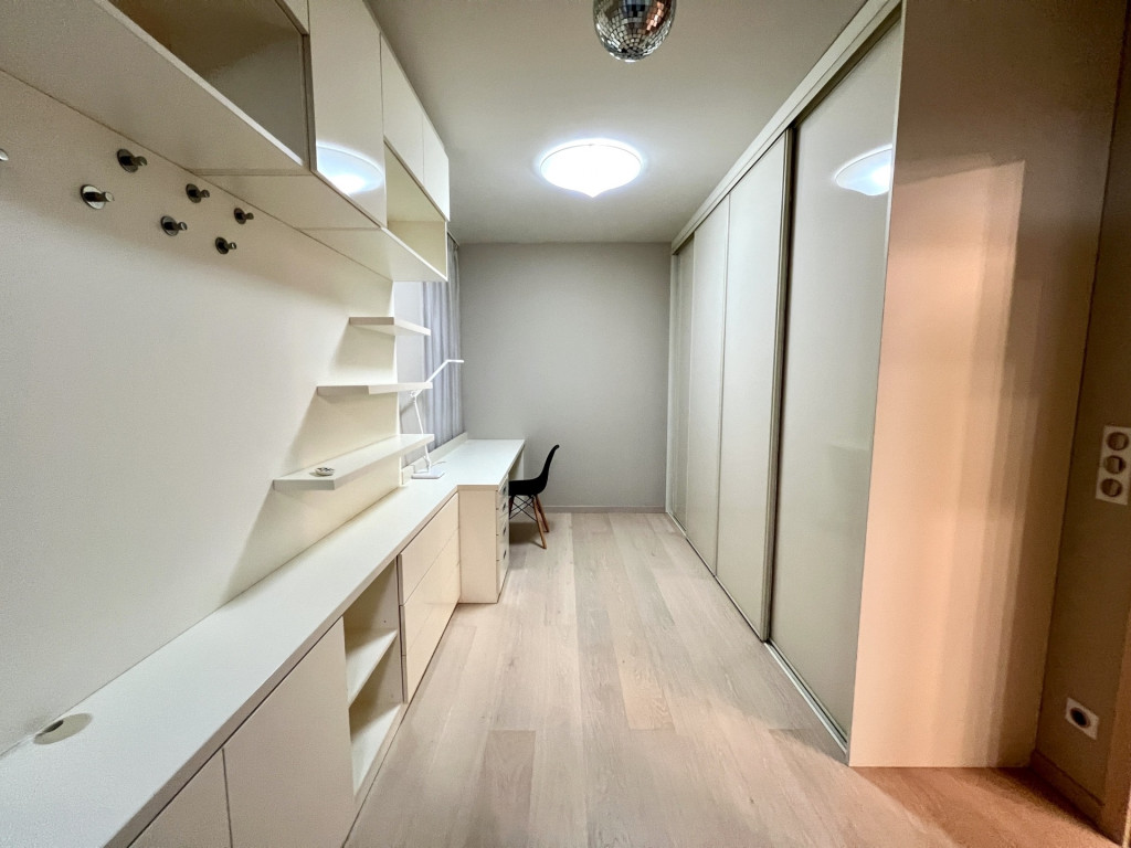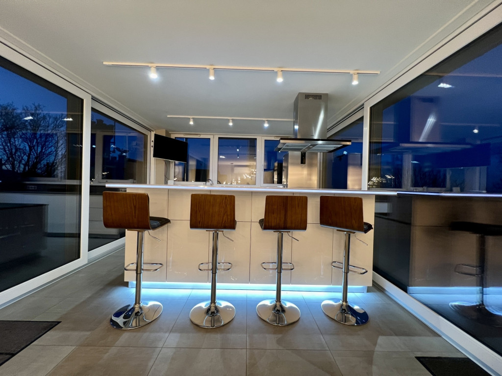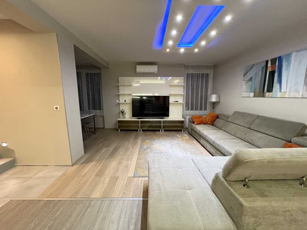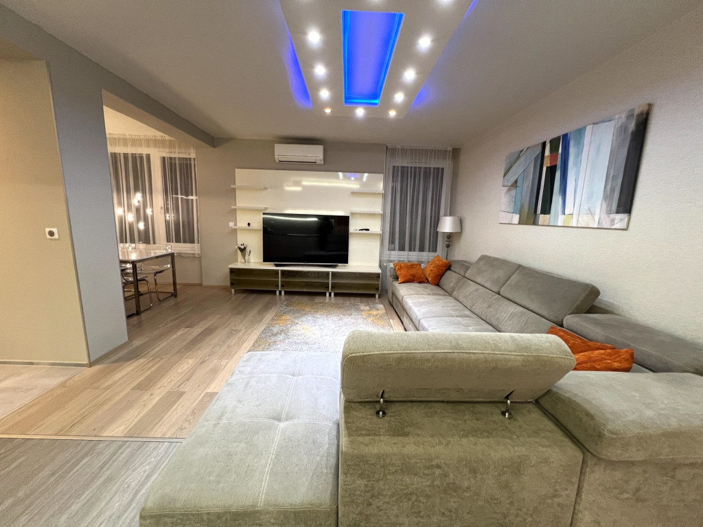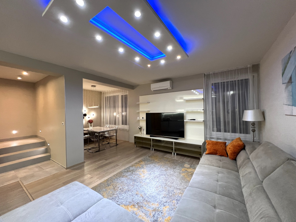 A lakás minőségi bútorokkal berendezett, gépesített, minden helyiség klímával felszerelt.
