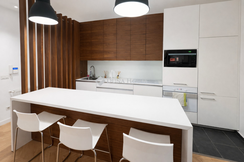 Főbb jellemzők:2 hálószoba + tágas nappali erkély3 fürdőszoba külön háztartási helyiség teljesen gépesített konyha (főzőlap, elszívó, mikró, mosogatógép, hűtő) mosó-szárítógép egyben gázcirkó fűtés + hűtő-fűtő klímaokos termosztát telefonról vezérelhető fűtés és klíma LED hangulatvilágítás az egész lakásban.