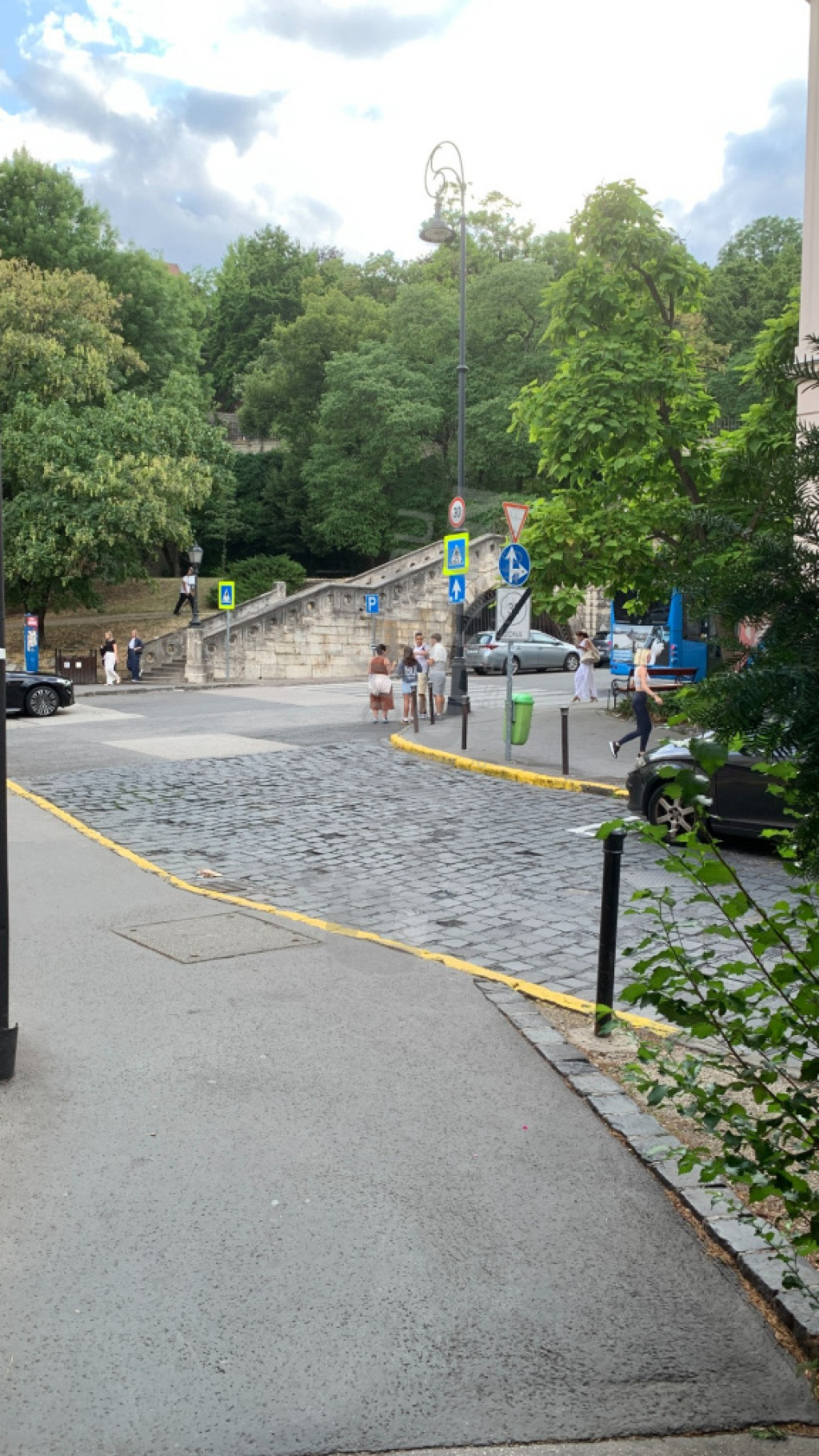Kiváló elhelyezkedés: a környék csendes, zöldövezeti jellegű, ugyanakkor néhány perc sétával elérhető a budai Vár, a Duna-part, valamint a belvárosi közlekedési csomópontok. Fizetős parkolási övezet.