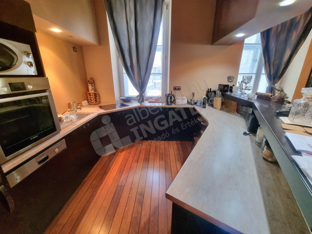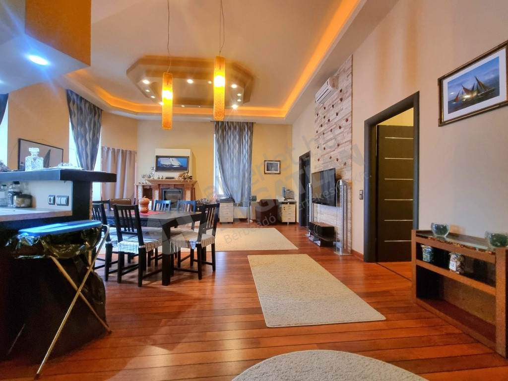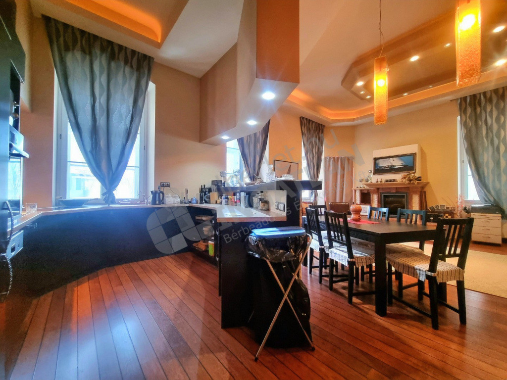 In the Víziváros-Váralja district, in Fő street, a 96 m², renovated, furnished and mechanized apartment is available for rent on the first floor of a small listed condominium.