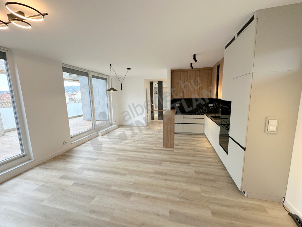 Gellérthegy utcában kiadó panorámás, újépítésű penthouse, 27m2-es terasszal.