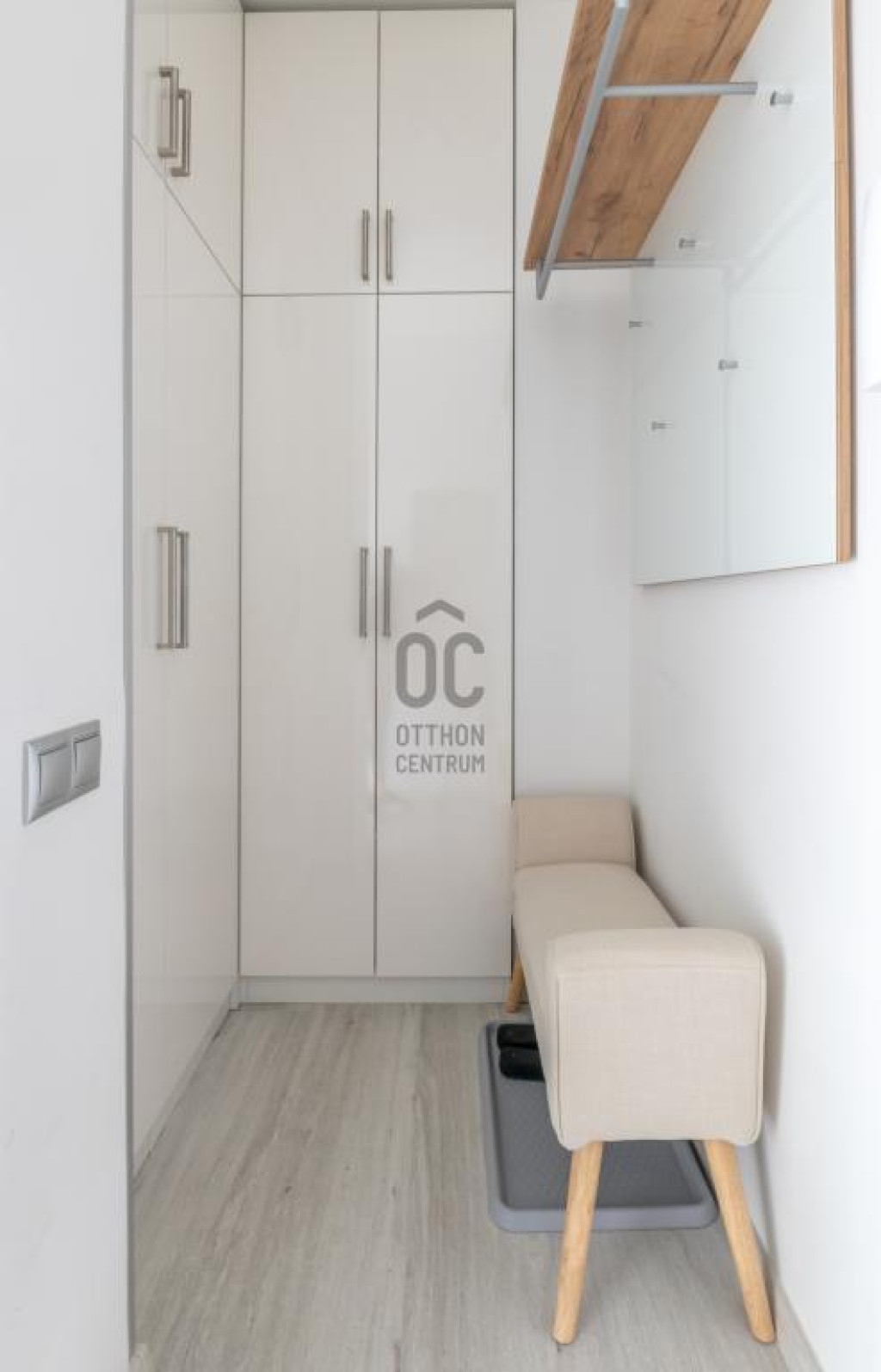 - Felső szint: bejárat, előszoba beépített szekrénnyel.