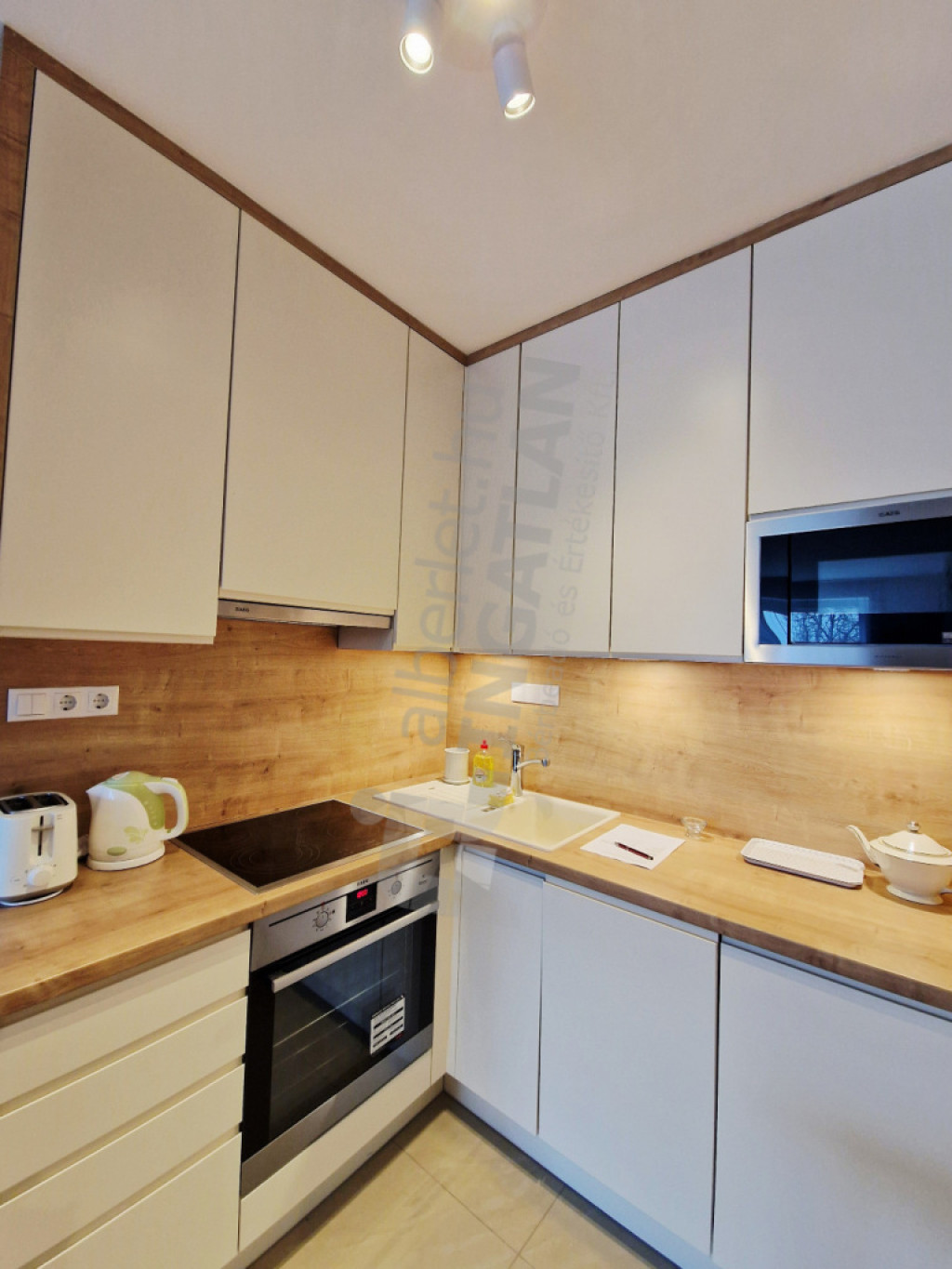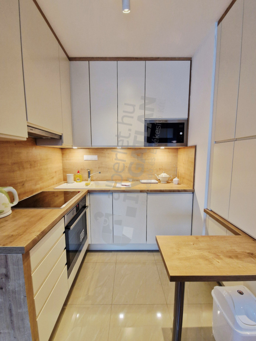 Gépesített: Mosogatógép, Hűtő, főzőlap, elszívó, stb