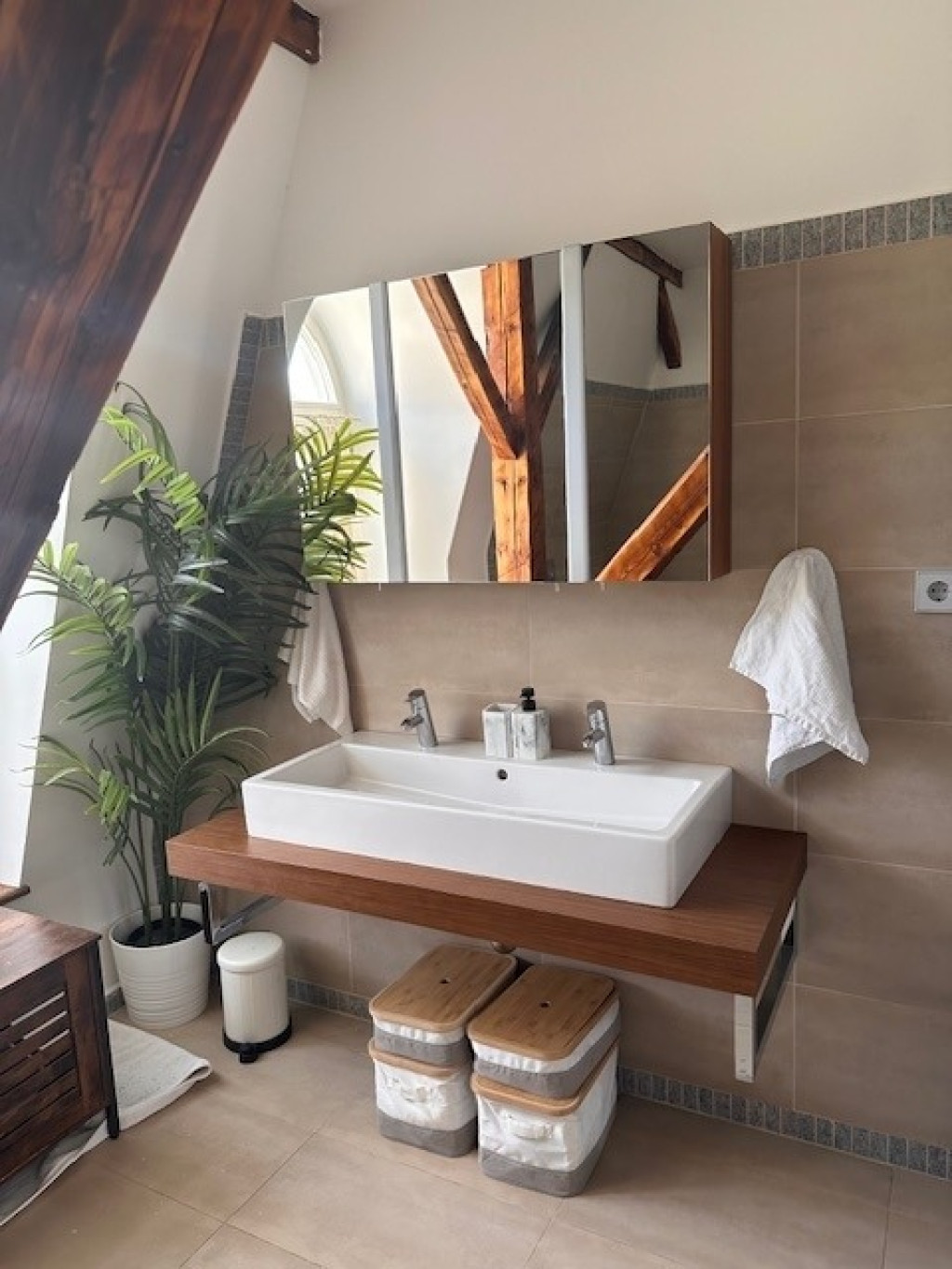 a fürdőszoba kádas, mosógéppel felszerelt.