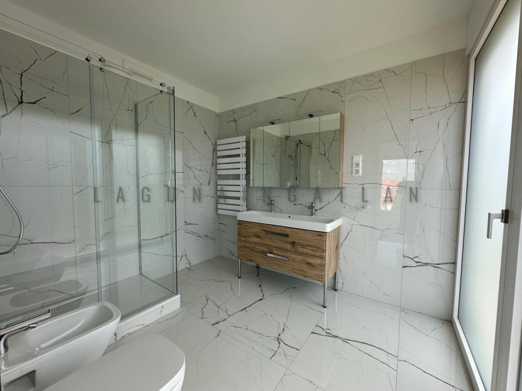 A kiadó lakás egy vadonat új liftes 4 lakásos társasházban található, 150nm, tágas 62 nm-es amerikai.konyhás nappalival, 4 hálószobával, 2 fürdőszobával, háztartási helyiséggel, gardróbokkal, beépített-, gépesített konyhával, hőszívattyús hűtéssel-fűtéssel, elektromos zsalúziákkal, távoli vezérléssel, 2 garázzsal bérelhető.