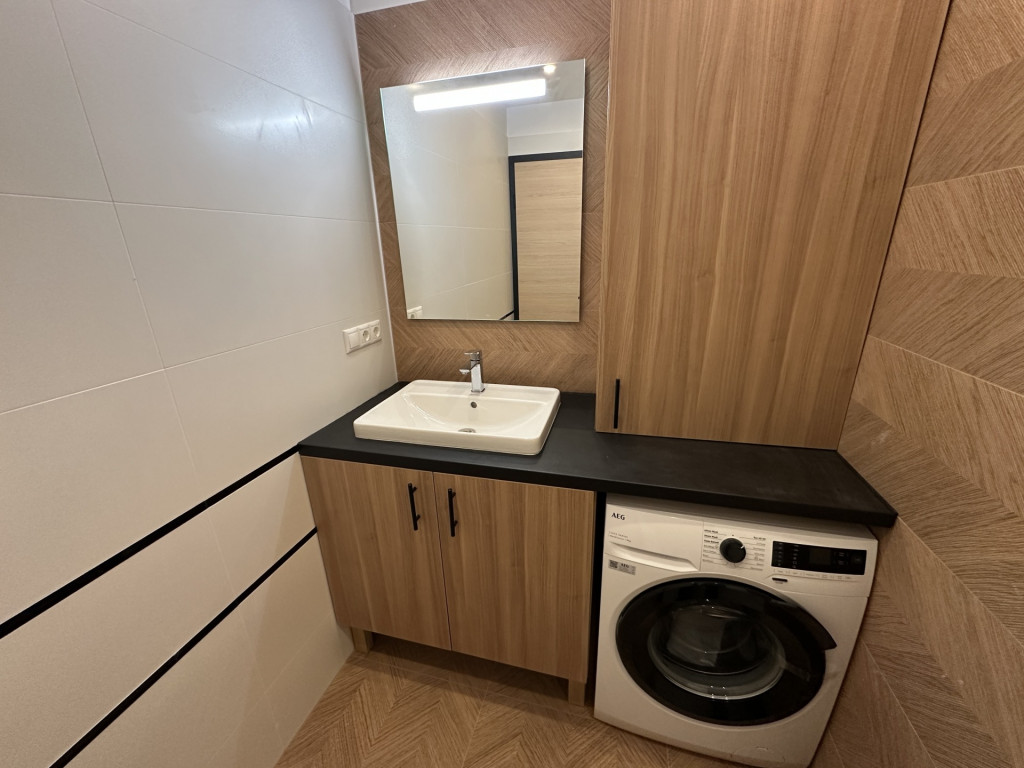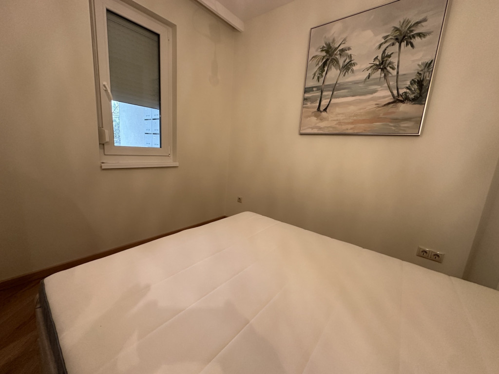 A lakás dél-nyugati tájolásának köszönhetően rendkívül világos. Elosztása praktikus: egy FRANCIAERKÉLYES AMERIKAI KONYHÁS NAPPALI étkezővel, egy kényelmes hálószoba, egy külön GARDRÓBHELYISÉG, zuhanyzós fürdőszoba és különálló WC alkotja. A konyha prémium, új AEG gépekkel teljesen felszerelt, az ingatlan pedig részben bútorozott (ágy, kanapé, étkezőasztal székekkel, TV-állvány).