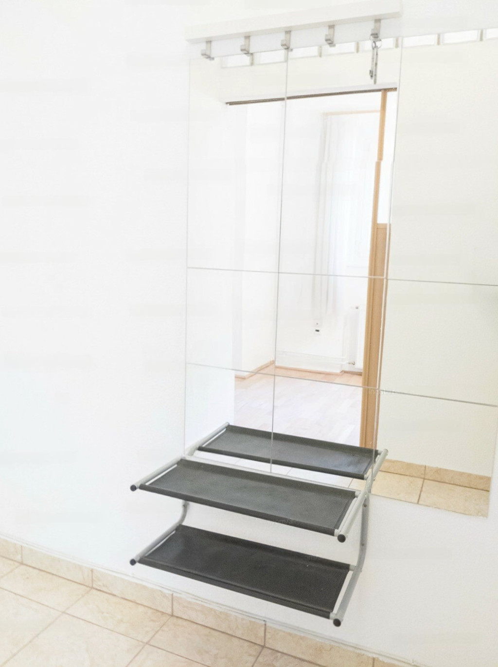 Az előző bérlő kérésére IKEA bútorokkal lett berendezve a lakás, a konyha gépesített.